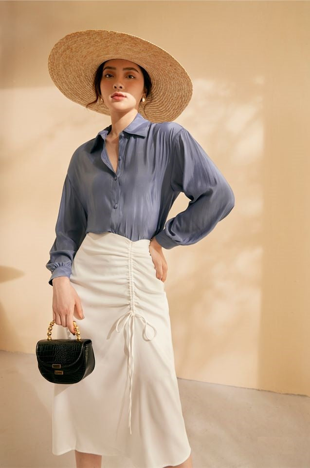 Sarah Luton presents a refined silk blouse that blends timeless design with effortless elegance. Made from fluid silk, this piece features a classic button-up front, long cuffed sleeves, and a relaxed silhouette that flatters every frame. Perfect for both polished office styling and elegant off-duty looks, it pairs beautifully with skirts or tailored trousers. Its lightweight silk construction ensures all-day comfort and breathability.