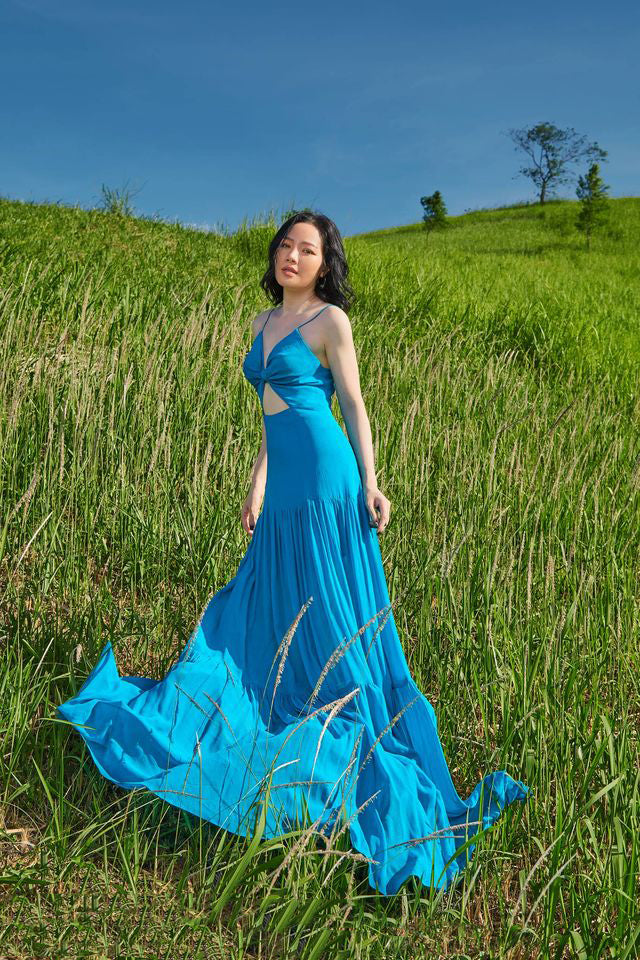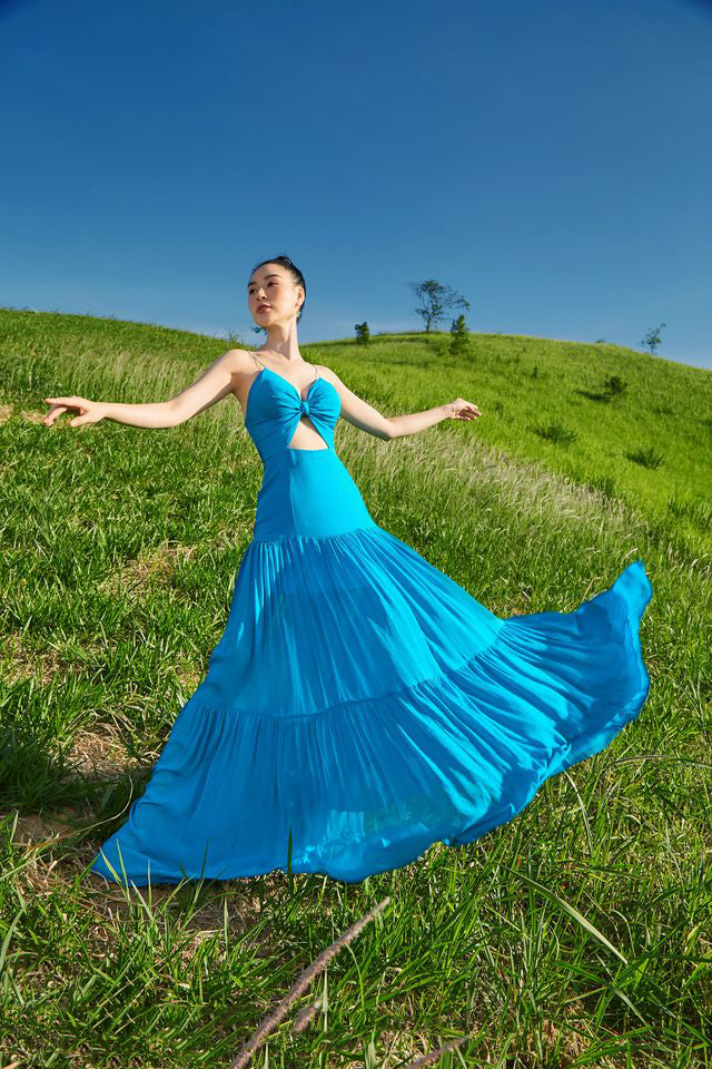 Make a bold statement in this stunning silk maxi dress by Sarah Luton, designed to move beautifully with every breeze. Crafted from high-quality silk, this dress features a flattering ruched bodice with a center cut-out detail and adjustable spaghetti straps. The full-length skirt flows effortlessly to the floor, creating a graceful silhouette that’s both eye-catching and elegant. Perfect for beach weddings, destination getaways, or sunset soirées, this silk dress combines fluidity, structure, and timeless appeal for a standout look that exudes confidence and femininity.