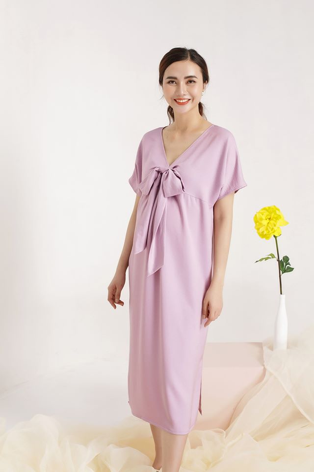 Designed with understated elegance in mind, this silk midi dress from Sarah Luton is the perfect balance of comfort and sophistication. Crafted from soft, breathable silk, it features a relaxed silhouette with short sleeves and a charming front bow detail that adds feminine flair. The midi length offers graceful coverage, while the V-neckline elongates the figure for a flattering finish. Whether styled for a brunch, baby shower, or a daytime celebration, this silk dress exudes timeless charm and effortless refinement.
