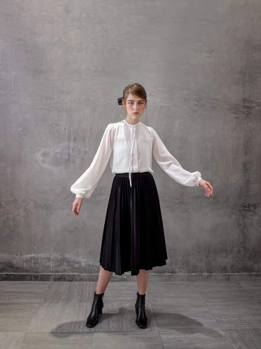 Refined and endlessly versatile, this silk pleated midi skirt by Sarah Luton brings effortless elegance to everyday dressing. Crafted from fluid silk, it features sharp pleats that create graceful movement with every step. The flattering A-line silhouette sits high at the waist, making it perfect for pairing with tucked-in blouses or structured tops. Whether styled for work, an event, or casual sophistication, this skirt combines timeless design with premium craftsmanship for elevated day-to-evening wear.