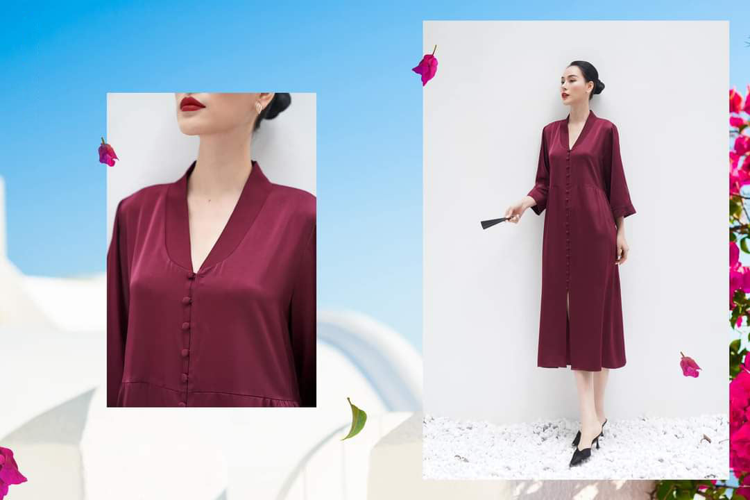 This elegant silk shirt dress from Sarah Luton is a refined wardrobe staple designed for graceful, everyday sophistication. Featuring a soft V-neckline, fluid midi length, and fabric-covered buttons, the dress balances minimal design with timeless detail. The lightweight silk fabric offers a luxurious drape that moves beautifully with each step. Long relaxed sleeves add a touch of modern ease, making it perfect for both office dressing and elevated casual looks. With its understated silhouette, this Sarah Luton piece redefines versatile elegance.