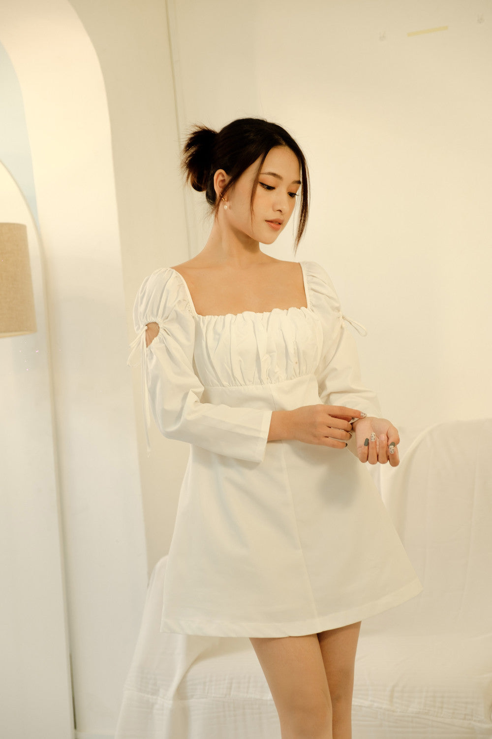 The Sarah Luton silk mini dress is designed to highlight effortless charm with a modern twist. Featuring a beautifully ruched bodice and long puff sleeves with bow-tie cutout details, this silhouette is both romantic and structured. Crafted from smooth silk, the fabric drapes gently over the body while maintaining shape and sheen. The square neckline adds an element of sophistication, making it perfect for daytime elegance or evening soirées. With its flattering fit and feminine design, this Sarah Luton piece is a versatile addition to your luxury wardrobe.