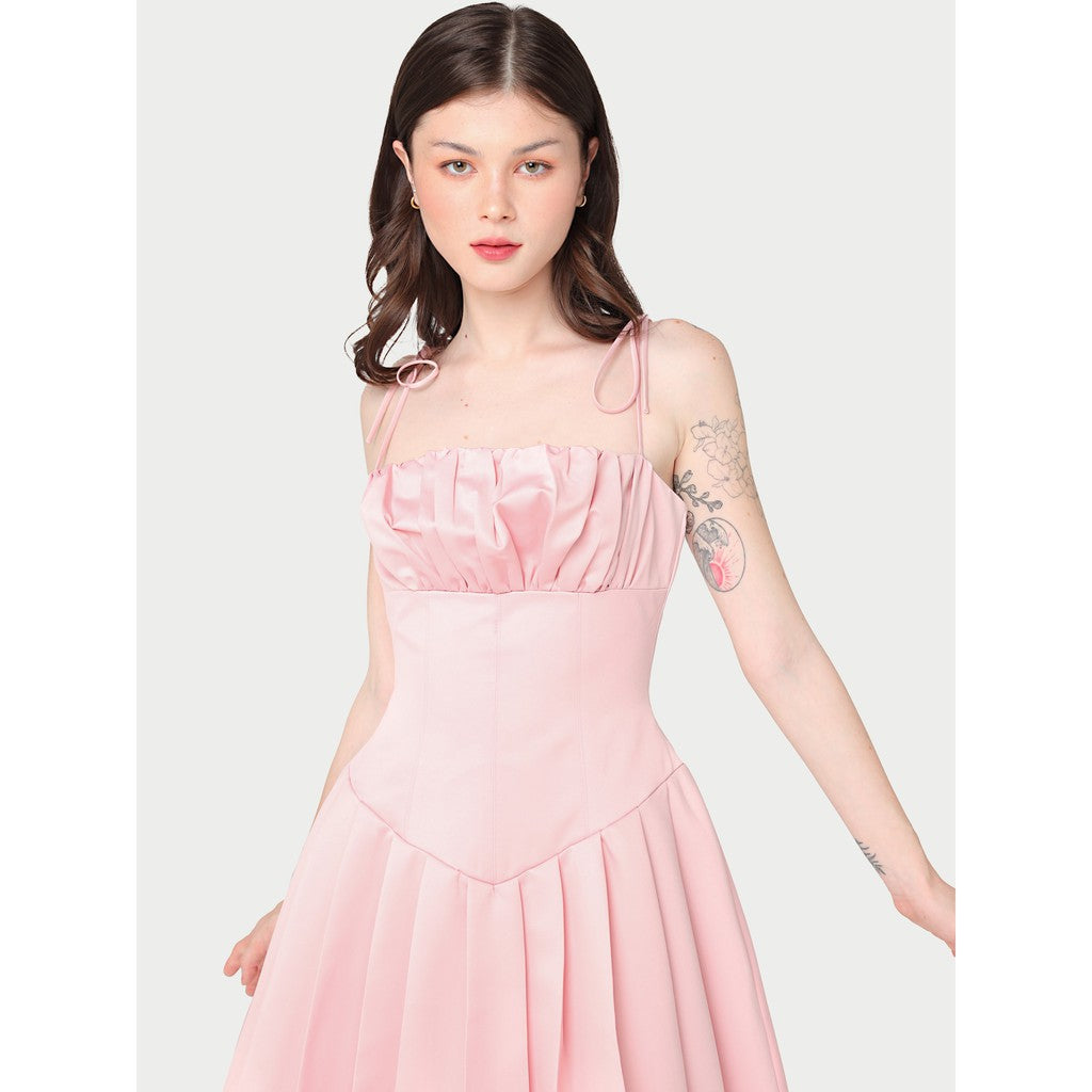 This silk mini dress by Sarah Luton captures the perfect balance of structure and softness. Designed with a ruched bust and a fitted corset-inspired waist, it accentuates the feminine silhouette while offering all-day comfort. The flared pleated skirt adds volume and movement, making it ideal for both daytime events and elegant evenings. Adjustable tie straps at the shoulders provide a custom fit and delicate finish. Crafted from high-quality silk, this dress is a sophisticated staple for warm-weather wardrobes and special occasions alike.