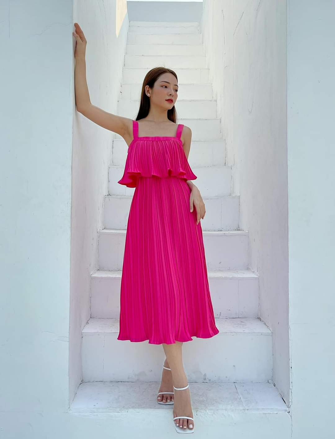 Elevate your summer wardrobe with this elegant silk pleated dress from Sarah Luton. Designed with wide shoulder straps and a softly layered bodice, this midi-length silhouette flows gracefully with every step. The lightweight silk fabric ensures all-day comfort while delivering a refined, airy aesthetic. Ideal for garden parties, holiday getaways, or city strolls, this timeless piece combines femininity with effortless sophistication. Make a statement in a dress that balances modern charm with classic tailoring—crafted to highlight your natural elegance.