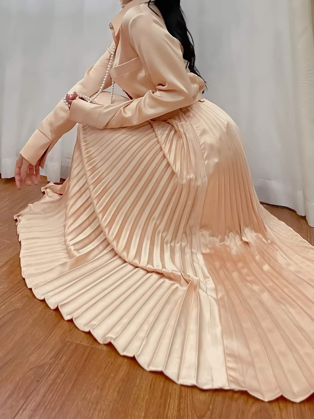 This silk midi skirt from Sarah Luton offers a graceful blend of structure and softness. Designed with crisp knife pleats and a high-waisted silhouette, it flatters the figure while allowing fluid movement. The silk fabric gives it a lustrous sheen and smooth drape, making it ideal for both formal events and refined everyday wear. Whether styled with a matching silk blouse or a minimalist top, this pleated skirt delivers timeless elegance and understated charm. A versatile staple to elevate your wardrobe.
