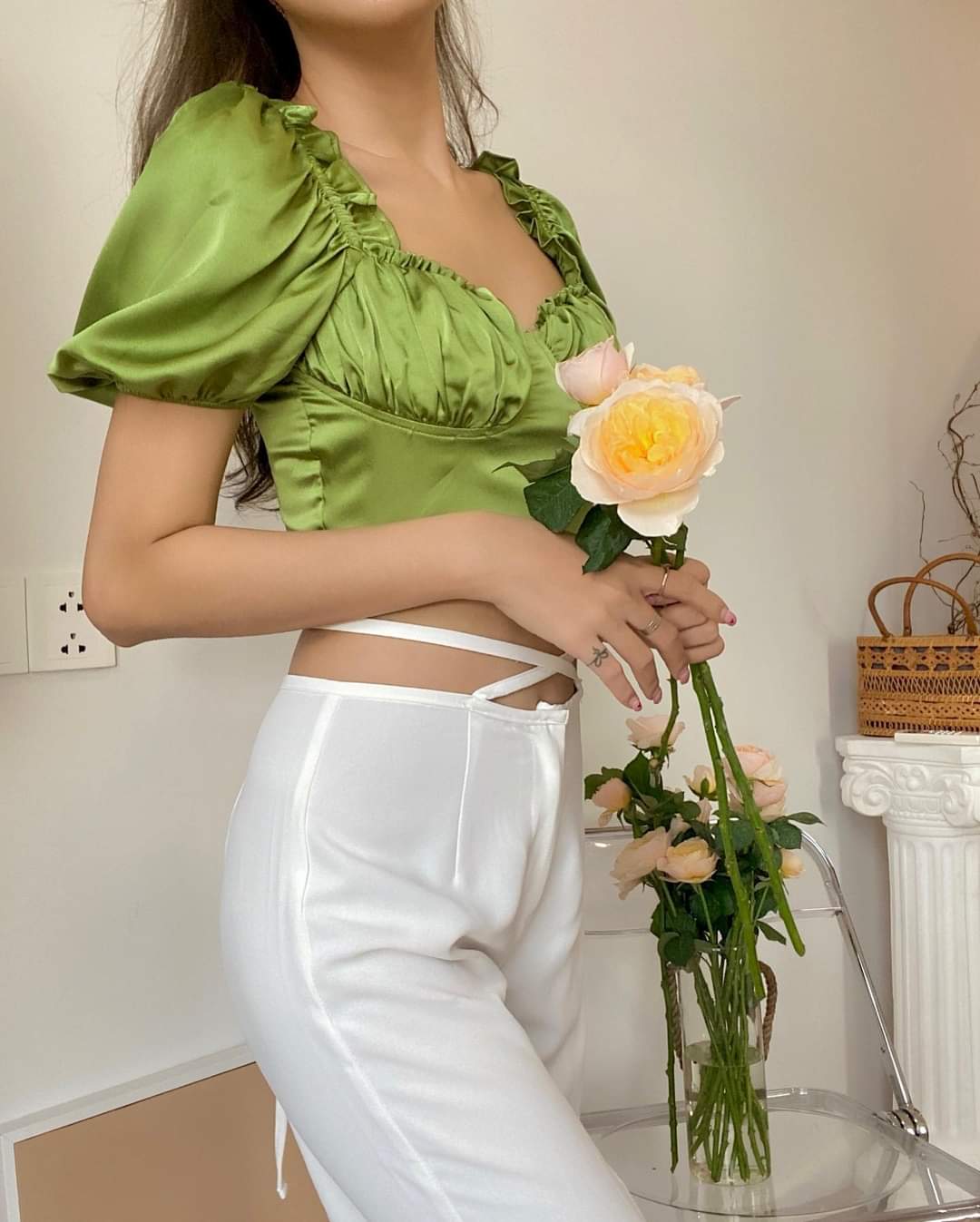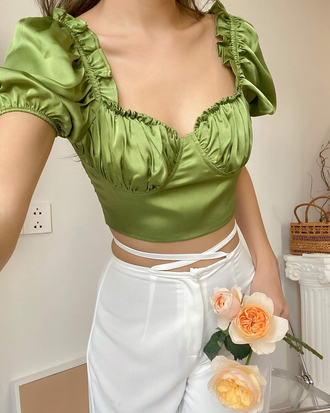 The Sarah Luton silk ruched crop top is a feminine and flattering choice for warm-weather styling. Crafted from smooth silk, this top features structured puff sleeves, a ruched bust with a sweetheart neckline, and an elasticized smocked back for a comfortable fit. Its cropped silhouette and delicate shoulder gathering accentuate the waist, making it ideal for pairing with high-waisted skirts or pants. Whether styled casually or dressed up, this silk blouse offers a blend of elegance and modern charm. Add a polished finish to your summer wardrobe with this standout piece from Sarah Luton.