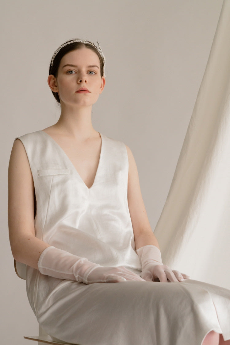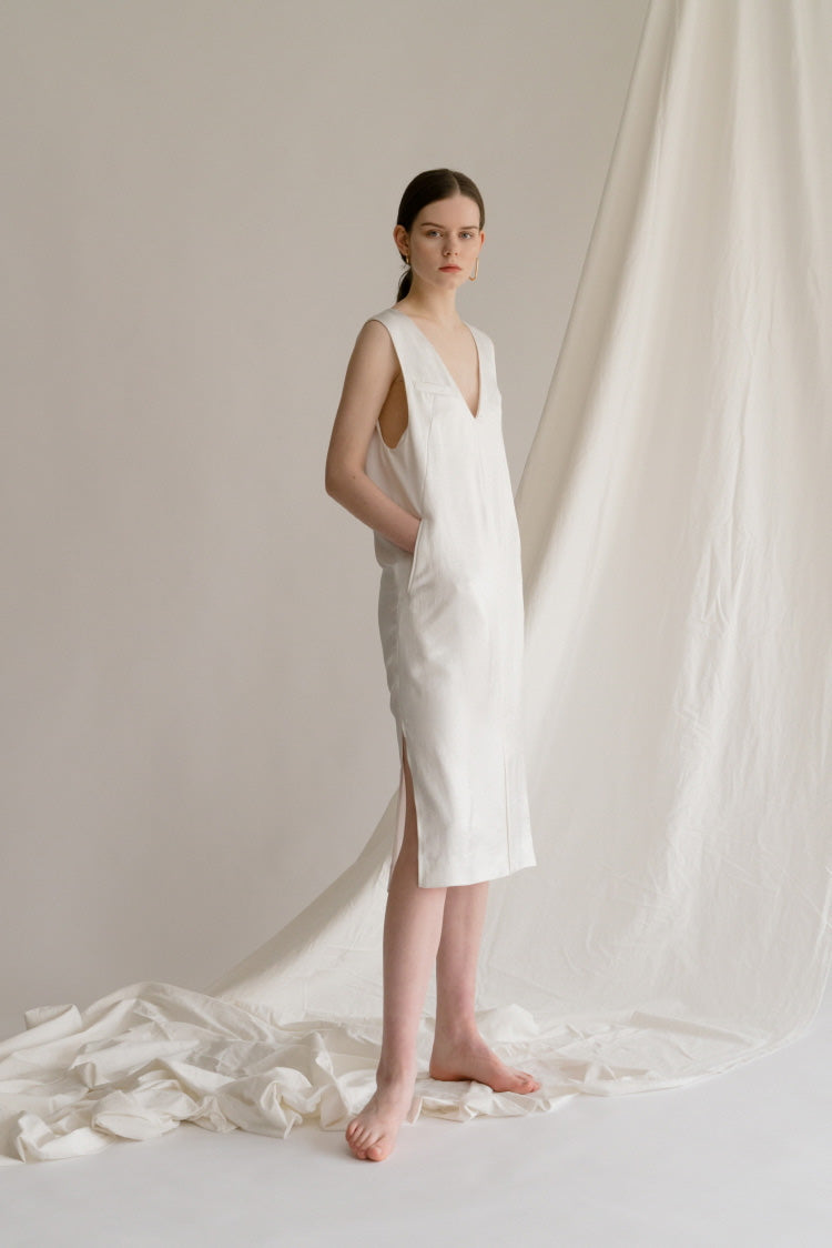 Elevate your summer wardrobe with this effortlessly elegant linen dress by Sarah Luton. Crafted from breathable natural linen, this sleeveless midi silhouette features a deep V-neckline and soft tailoring that flatters the figure. Discreet side pockets and high side slits add a touch of functionality and modern femininity. Designed for both minimalists and statement-makers, it's perfect for warm-weather days or refined layering. Pair with flats for a laid-back look or elevate with heels for an evening out.