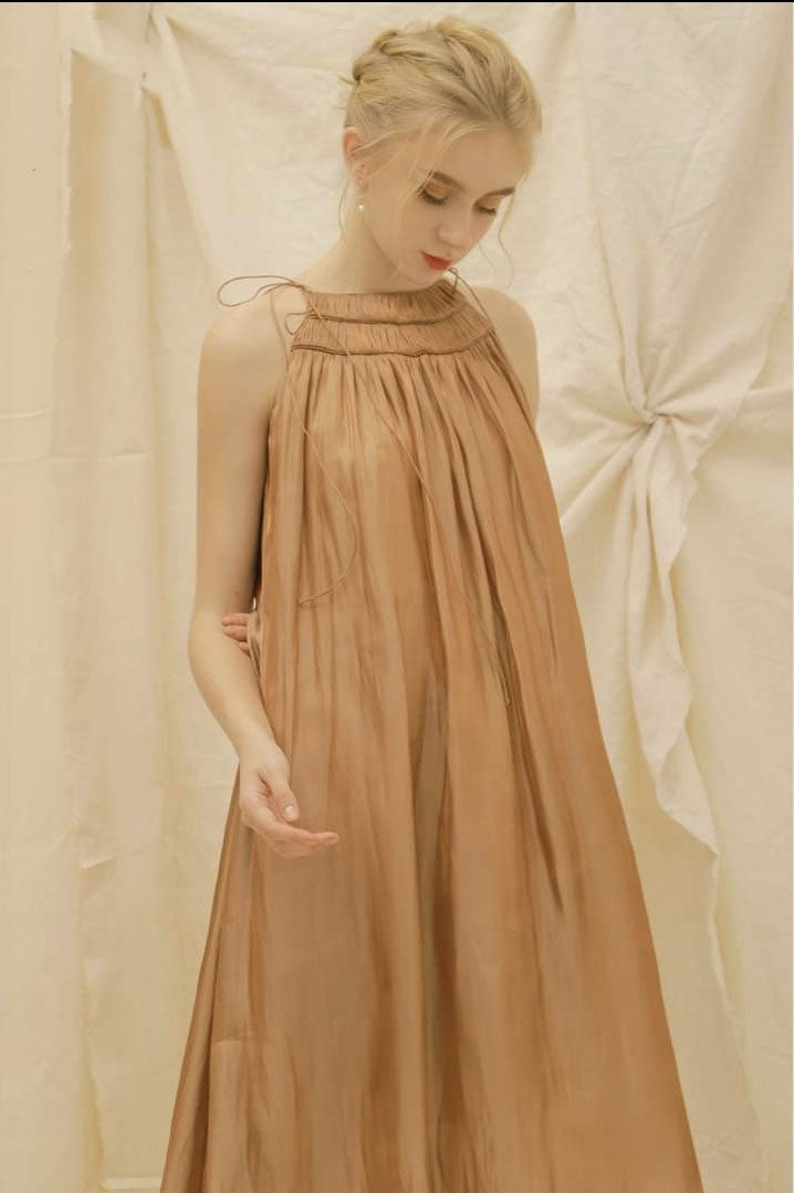 Crafted from lightweight organza, this sleeveless A-line dress by Sarah Luton is the embodiment of effortless elegance and movement. The design features delicate tie shoulder straps and a softly gathered neckline, creating volume and graceful flow through the body. Its semi-sheer texture and fluid drape highlight the ethereal beauty of organza, making this dress ideal for summer soirées, resort getaways, or elevated daytime events. The relaxed fit and airy construction ensure comfort while maintaining a refined feminine silhouette. With its understated charm and versatile styling potential, this organza dress makes a standout addition to any refined wardrobe.