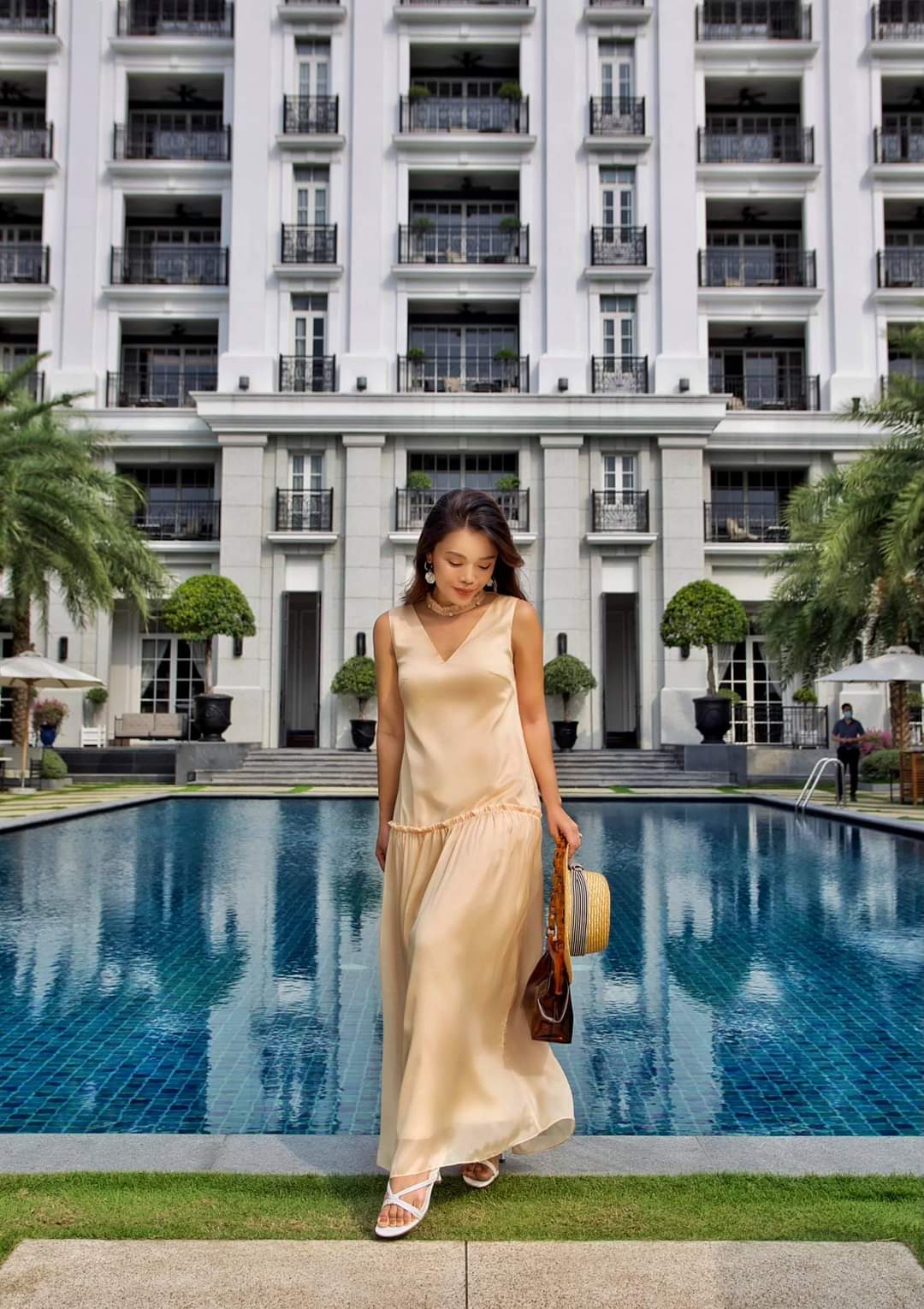 Elevate your resort wardrobe with this fluid silk dress from Sarah Luton, designed to exude effortless sophistication and relaxed femininity. Crafted from lustrous silk, this sleeveless silhouette features a flattering V-neckline and a subtly gathered drop waist, creating graceful movement with every step. Lightweight and breathable, it’s the perfect day-to-evening piece for warm weather settings. Whether you're strolling along a coastal promenade or enjoying a sunset dinner, this silk dress by Sarah Luton blends timeless charm with contemporary elegance, making it a versatile must-have in every refined wardrobe.