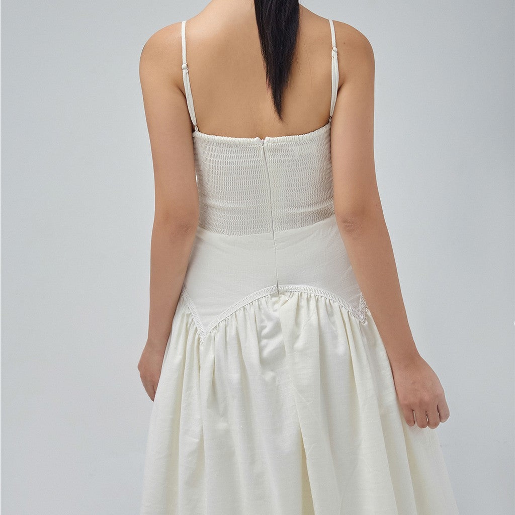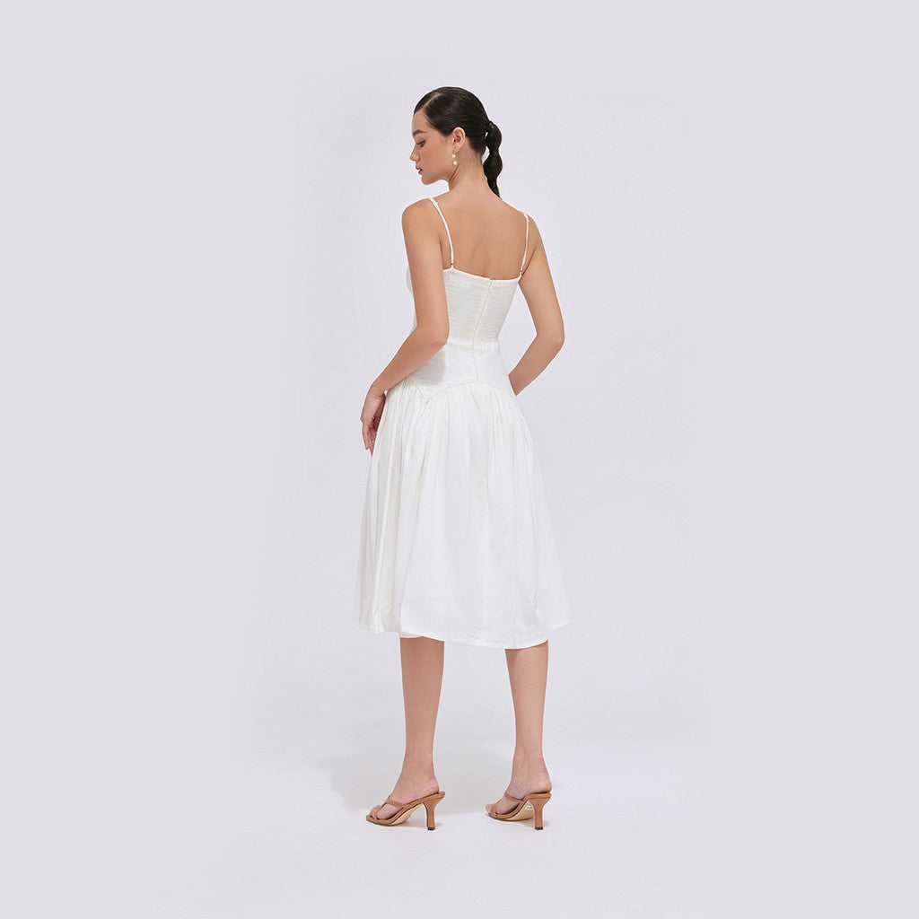 Elevate your wardrobe with this timeless silk organza midi dress from Sarah Luton. Designed with a corset-style bodice for a structured fit, this piece features delicate shoulder straps and a gathered skirt that adds soft volume and elegant flow. The natural sheen of silk organza enhances the feminine silhouette, making it perfect for refined occasions. Whether styled for garden soirées or intimate gatherings, this dress reflects sophistication and modern grace. Discover understated elegance with Sarah Luton's signature craftsmanship in every stitch.