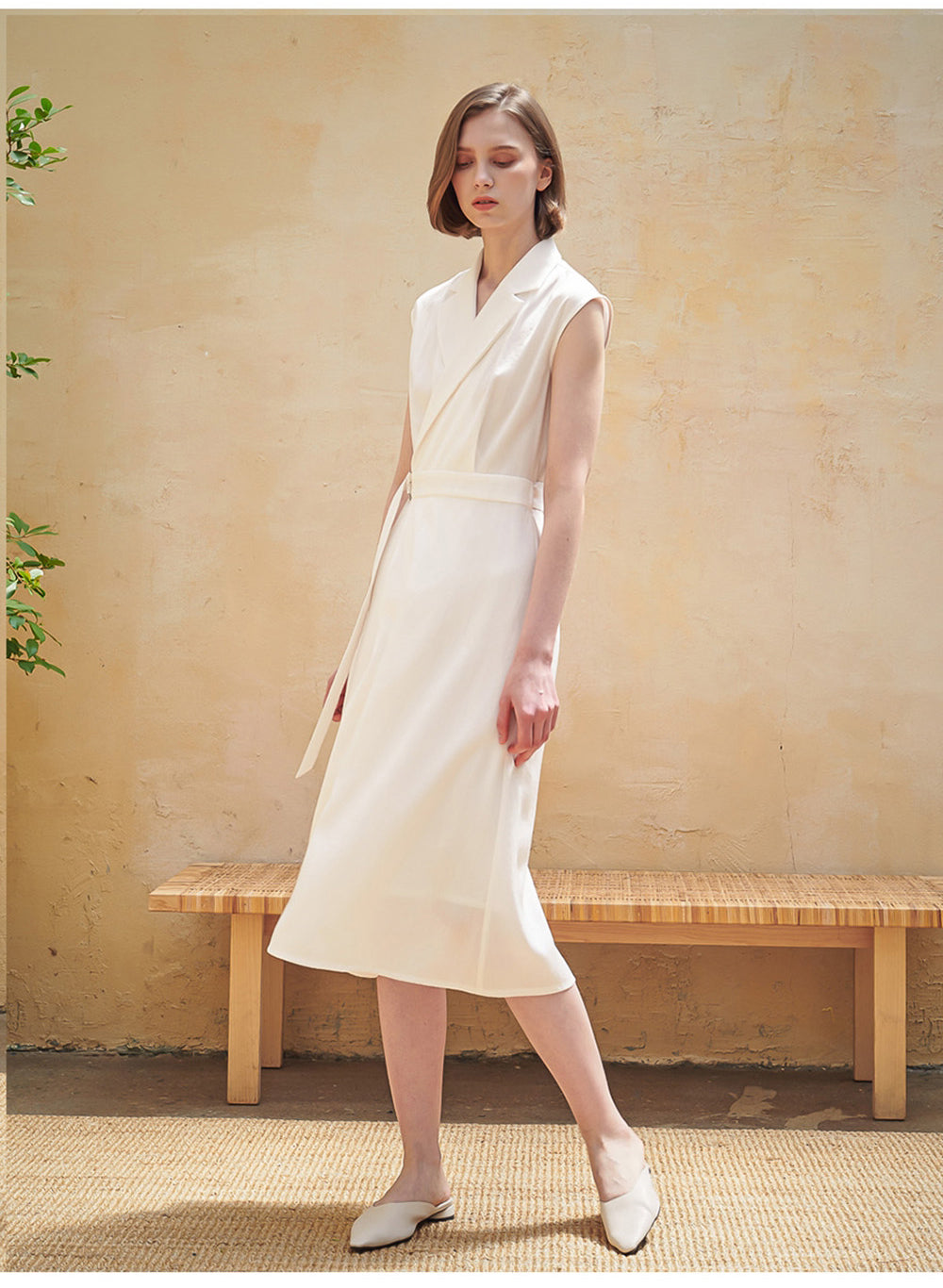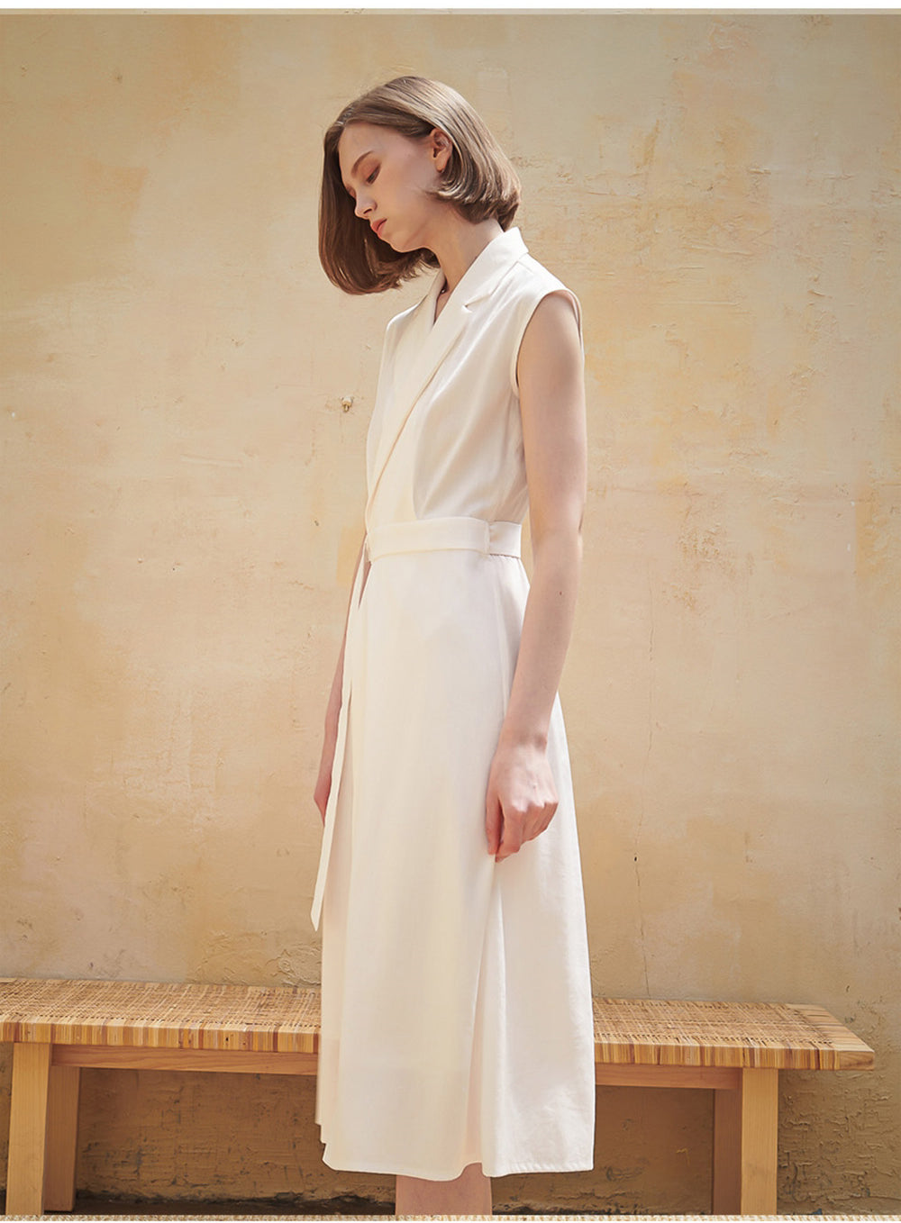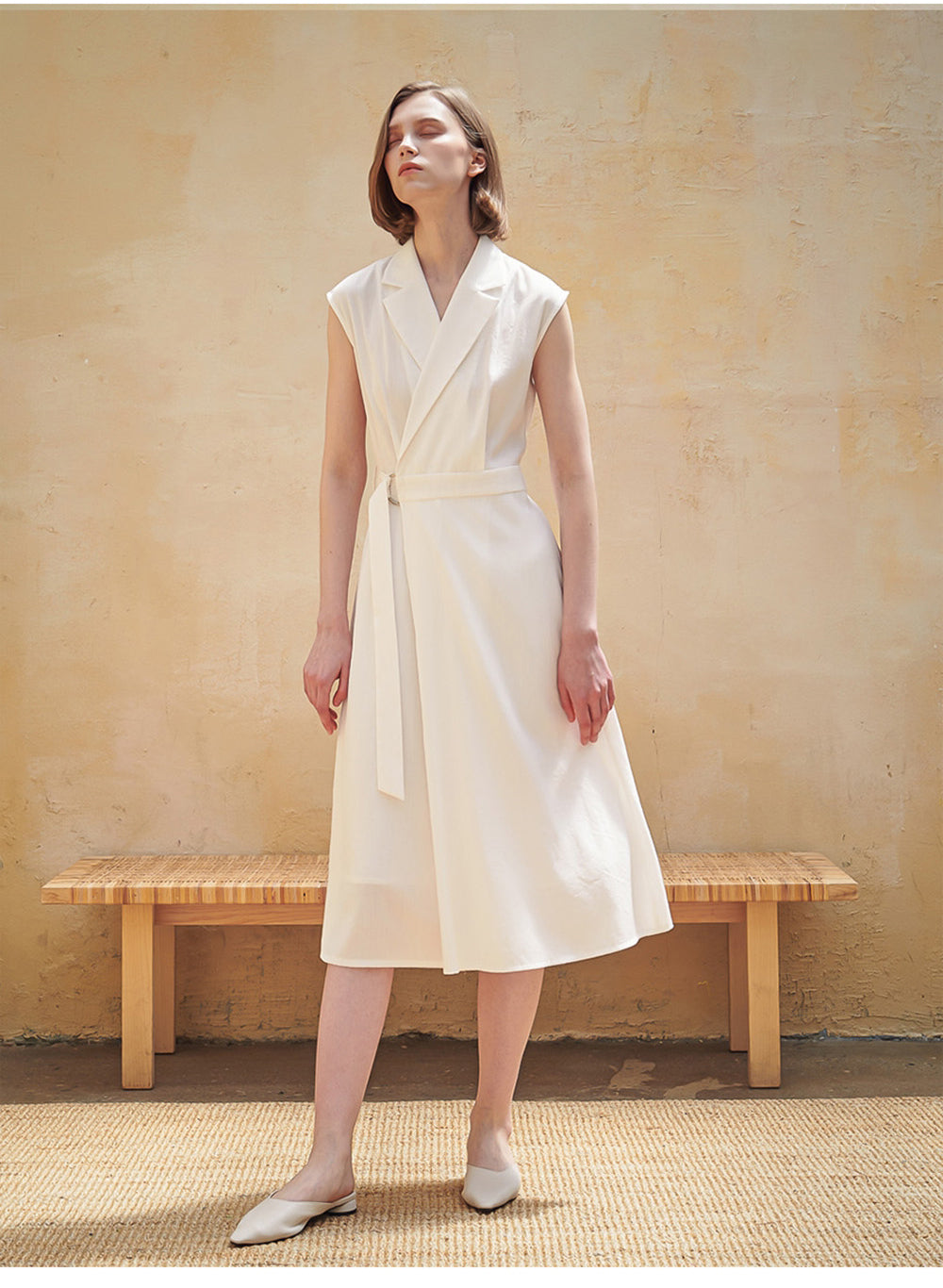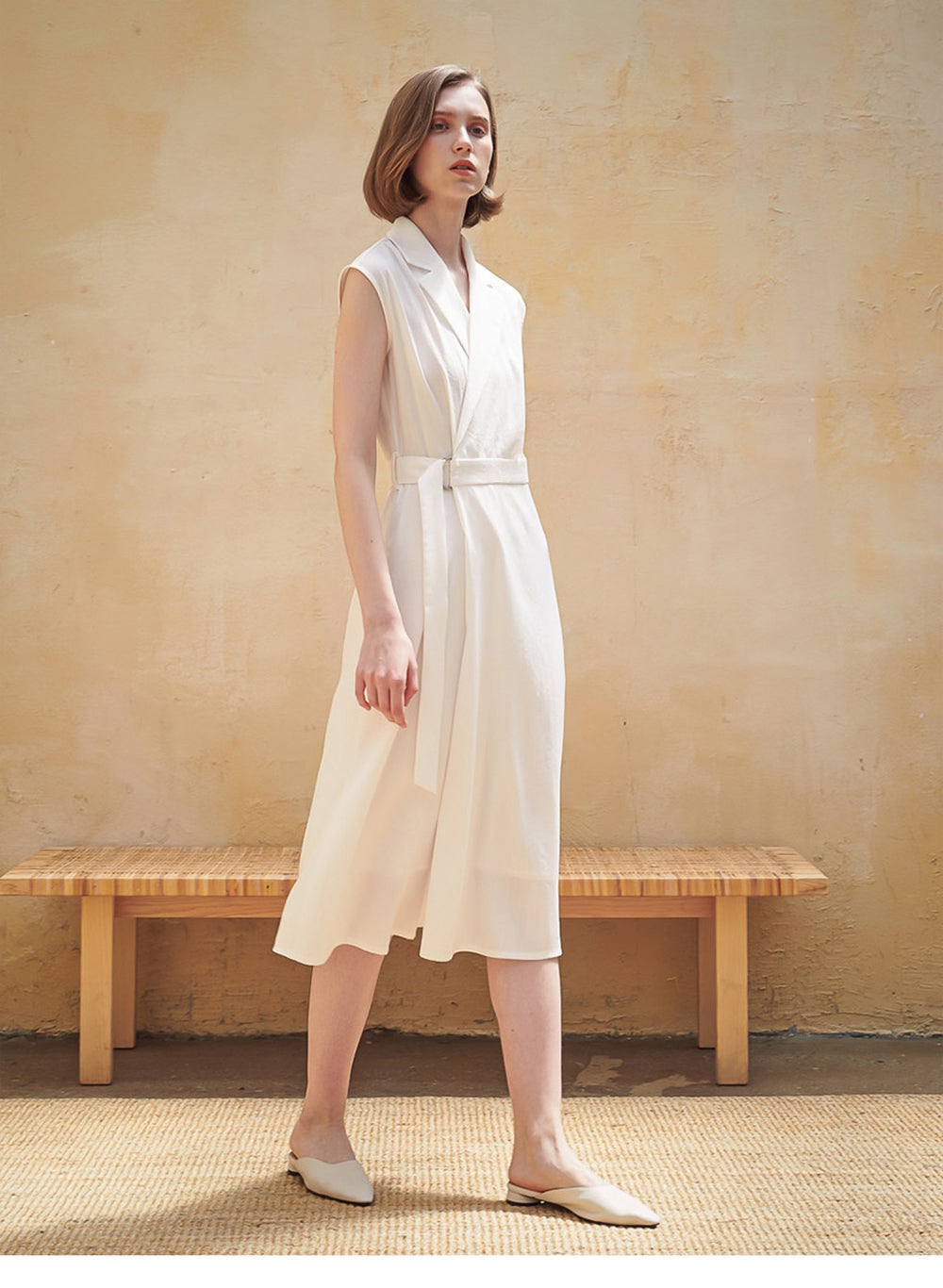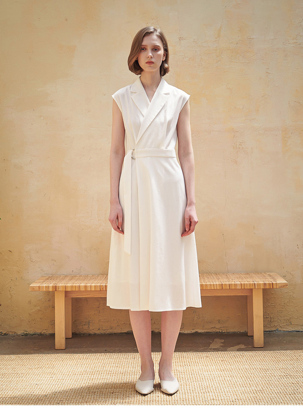 Sarah Luton presents a refined take on warm-weather elegance with this sleeveless linen wrap dress. Crafted from high-quality breathable linen, this dress features a structured notched lapel collar and a clean, belted waistline for a tailored silhouette. The midi length and fluid drape add timeless charm, while the sleeveless cut keeps it fresh and effortless. Ideal for garden parties, brunches, or a minimalist statement at the office, this versatile design brings understated luxury to everyday dressing.