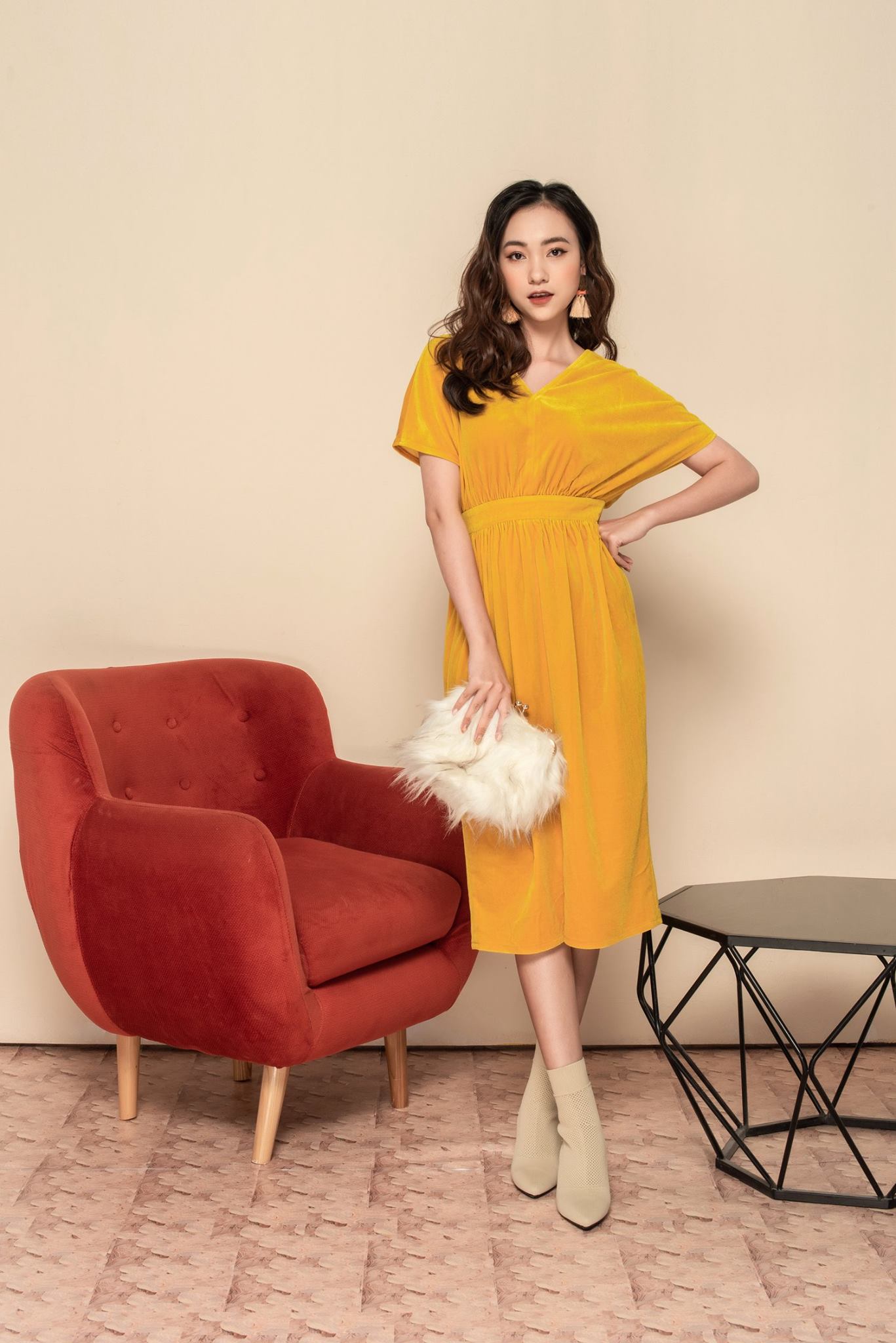 Crafted from plush velvet, this midi dress by Laura Ren brings effortless elegance to everyday dressing. Featuring a flattering V-neckline at both front and back, short dolman sleeves, and a gently cinched waistband, it creates a softly sculpted silhouette that moves gracefully with you. The rich texture of velvet catches the light beautifully, making it an ideal piece for both daytime refinement and evening charm. A concealed back zipper ensures a clean finish while keeping the silhouette seamless. Pair it with boots or heels to suit the season or occasion.