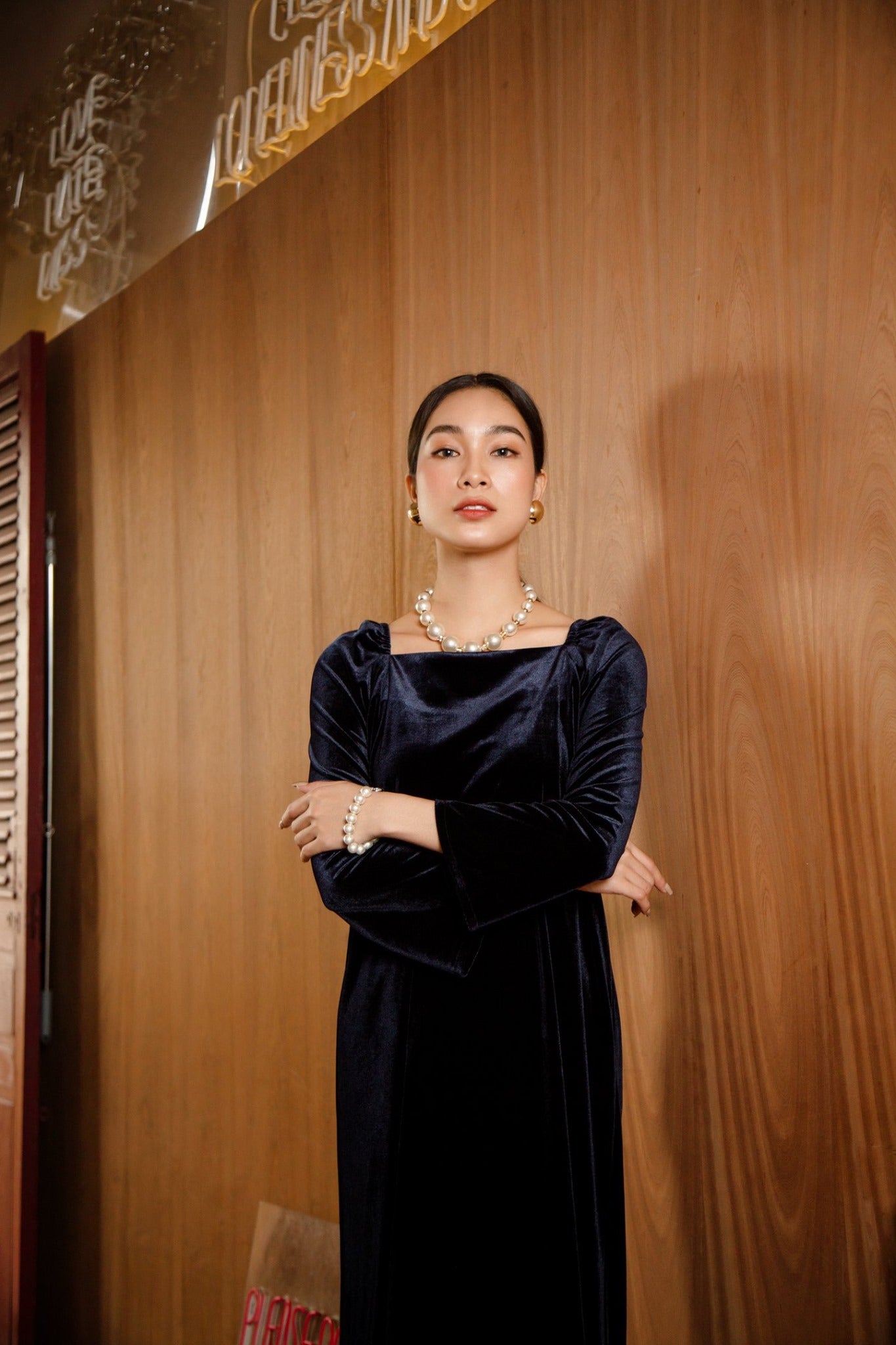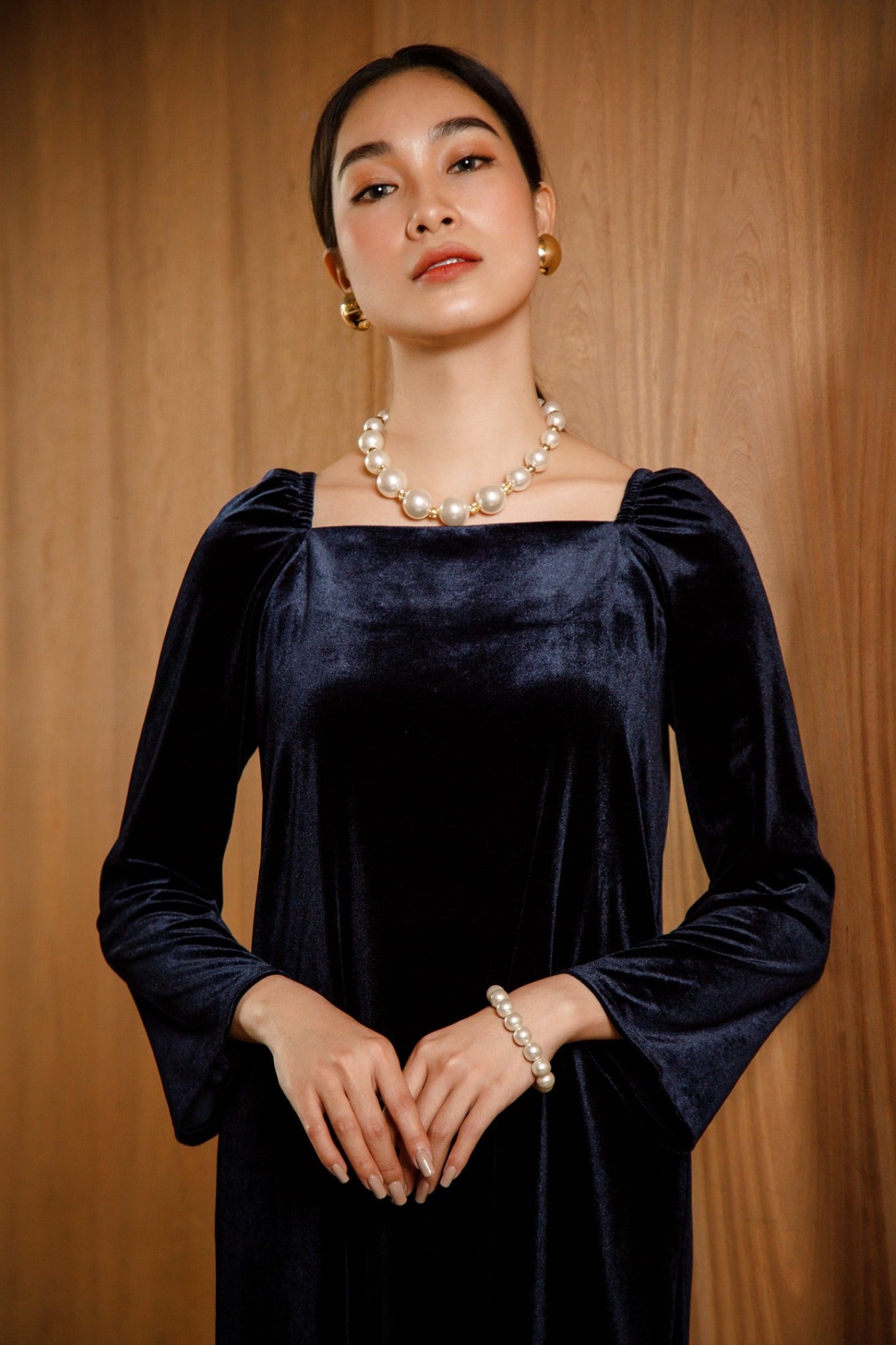 This exquisite velvet dress from Laura Ren blends vintage refinement with contemporary charm. Crafted from plush velvet, the dress features a sophisticated square neckline that frames the collarbones beautifully, complemented by gathered shoulders and long flared sleeves. Its floor-length cut offers a fluid, graceful silhouette ideal for evening events, formal occasions, or holiday gatherings. Designed to flatter the figure while providing comfort, this velvet gown adds timeless elegance to any wardrobe. With its subtle sheen and luxurious drape, this piece is a statement of quiet glamour and refined femininity.