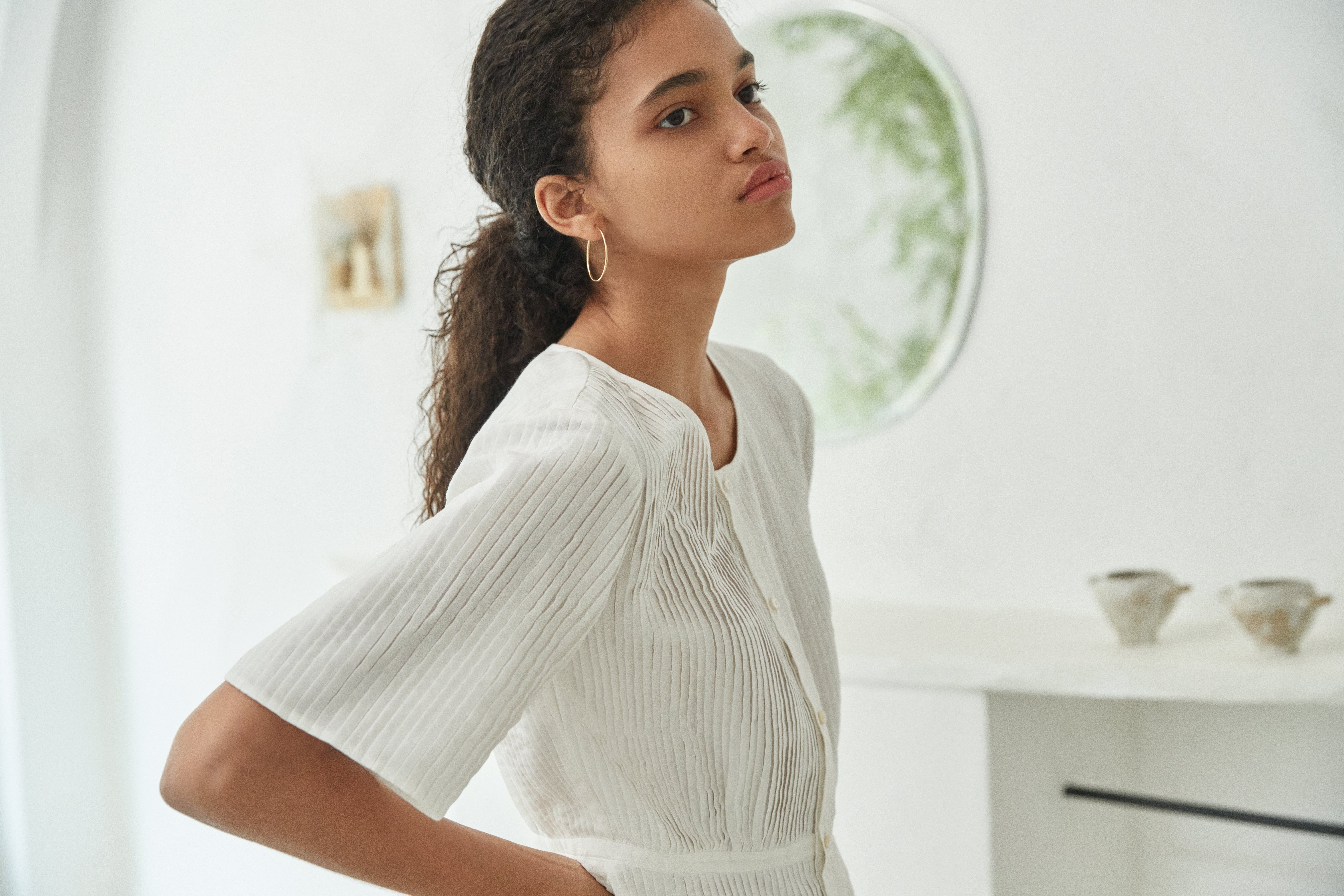 The Sarah Luton structured linen top is a refined take on summer tailoring, featuring a button-down front and soft vertical texture that enhances its minimalist silhouette. Crafted from breathable linen, this piece offers a sculpted waistline and clean neckline, ideal for both city dressing and resort elegance. A subtle peplum flare at the hem adds a feminine touch to this timeless essential.