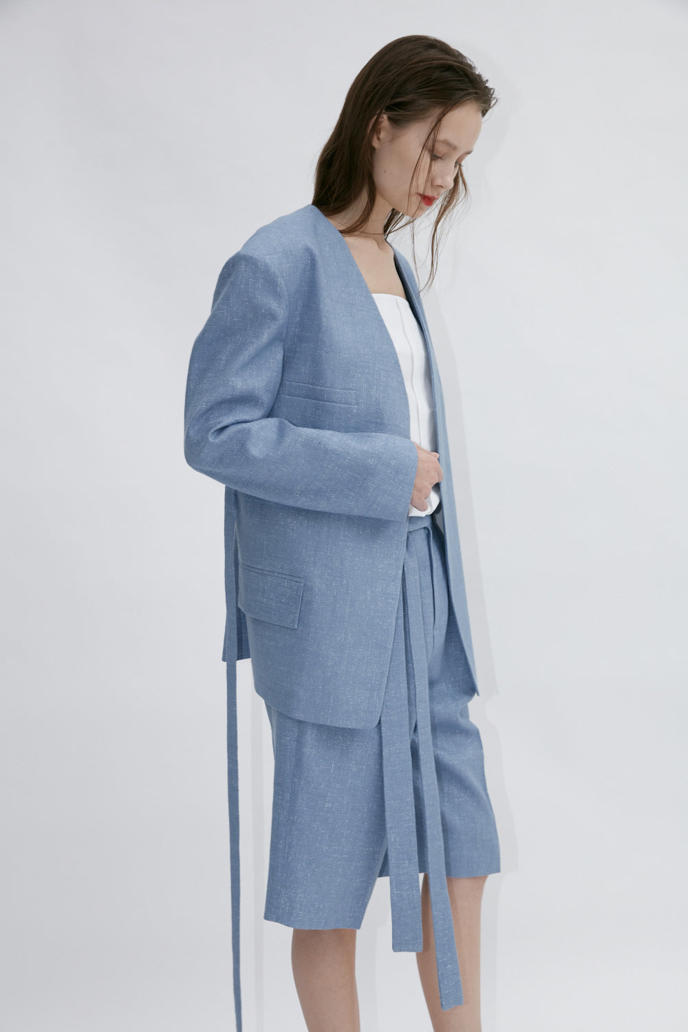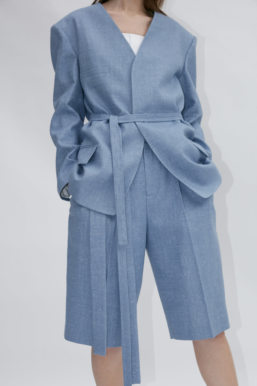 The Linen Shorts by Sarah Luton are expertly tailored from breathable linen, offering a structured yet relaxed silhouette that transitions seamlessly from casual to refined settings. With sharp pleats, an elongated hemline, and refined texture, these shorts embody elevated minimalism with effortless polish.