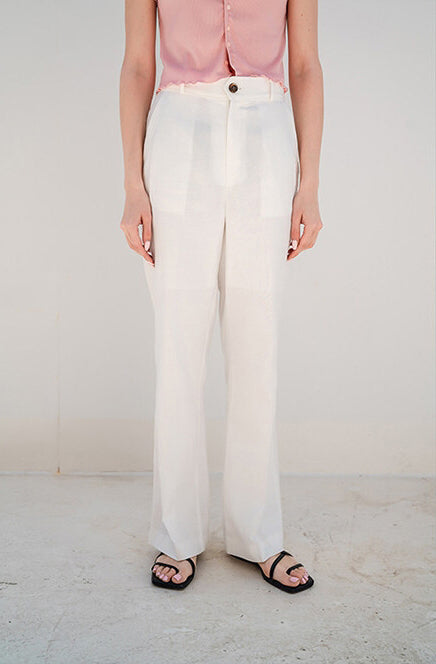 Sarah Luton presents a refined take on summer tailoring with these high-waisted linen pants. Crafted from breathable, lightweight linen, the trousers feature a clean front, button closure, and full-length straight-leg cut for effortless elegance. Designed for versatility, they can be styled for relaxed daytime wear or elevated evening looks. The structured waistband and minimalist design ensure timeless appeal and flattering proportions. A wardrobe essential for warm-weather sophistication.