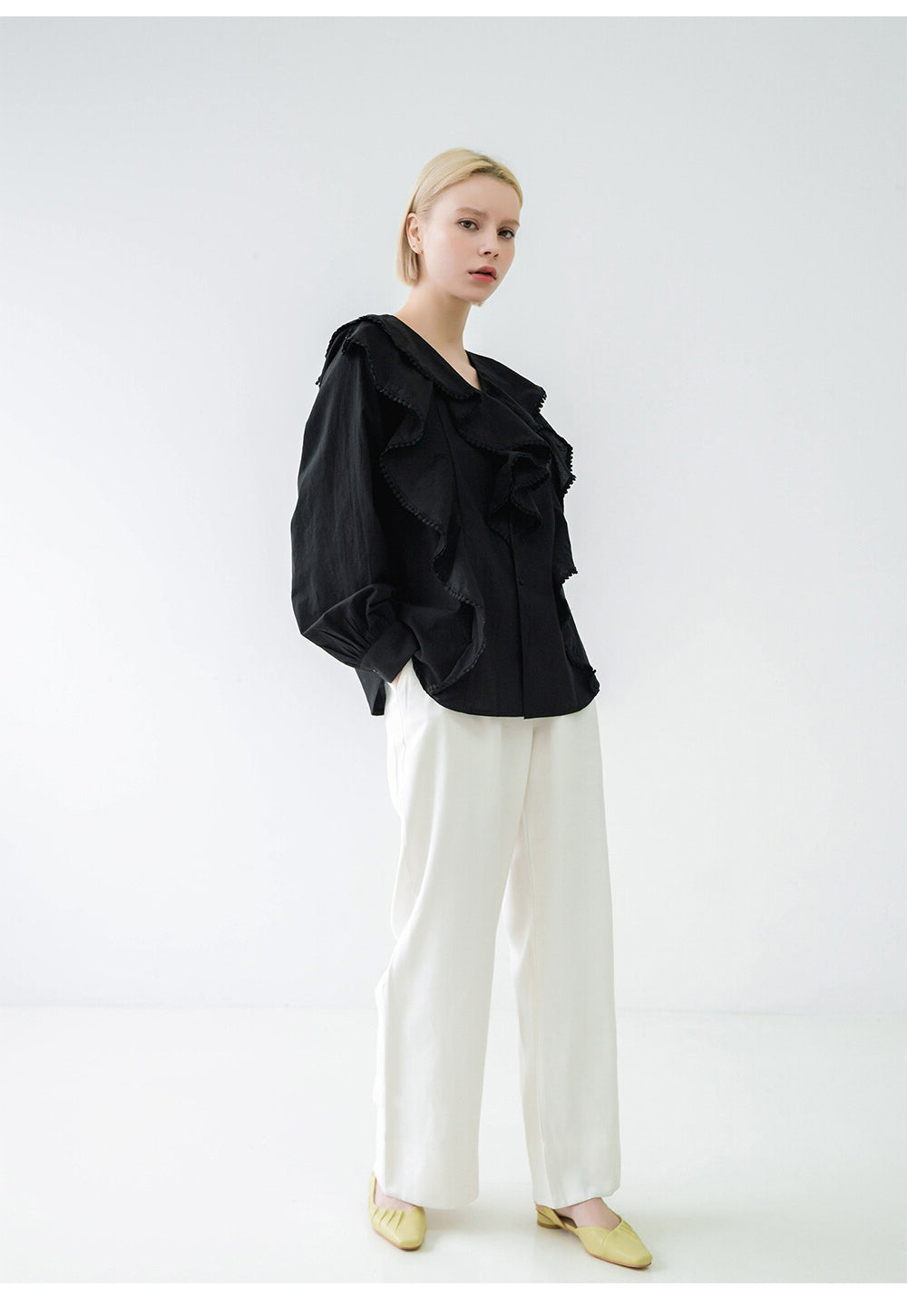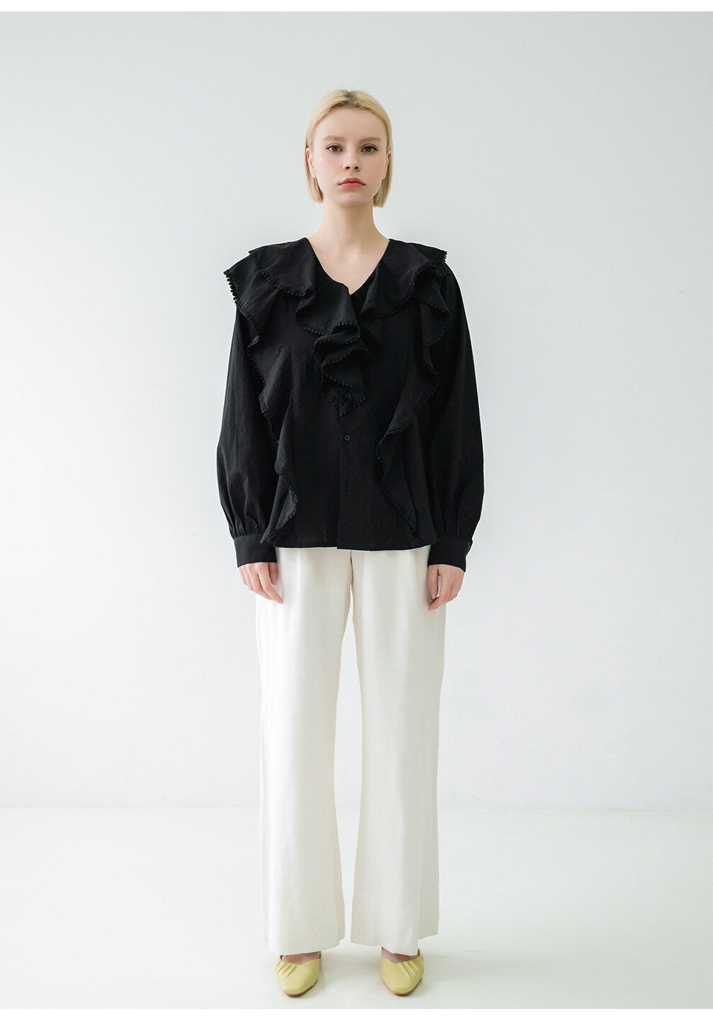 The Sarah Luton linen blouse brings refined romance to everyday dressing with its artful ruffle detailing and flowing silhouette. Crafted from lightweight linen, this blouse offers breathability and soft texture, ideal for sophisticated warm-weather style. Designed for effortless pairing with tailored pants or skirts, the Sarah Luton blouse elevates your wardrobe essentials with timeless femininity and modern charm.
