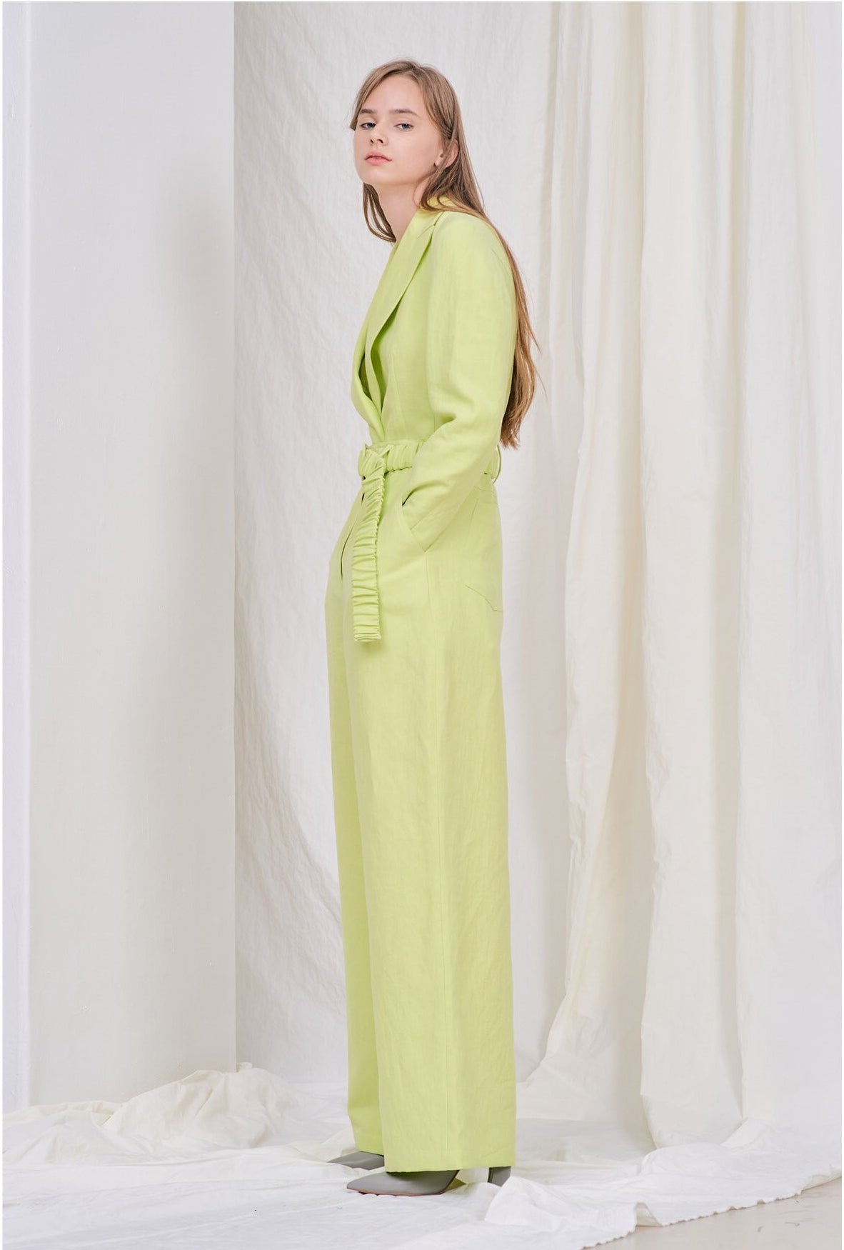 Sarah Luton presents this tailored linen blazer, a timeless essential that balances crisp structure with breathable comfort. Designed with a classic point collar, full-length sleeves with wide cuffs, and a clean button-down front, this piece brings modern polish to everyday wear. The lightweight linen fabric ensures effortless sophistication from desk to dinner. Tuck into high-waisted trousers or pair with linen skirts for a relaxed yet refined look.