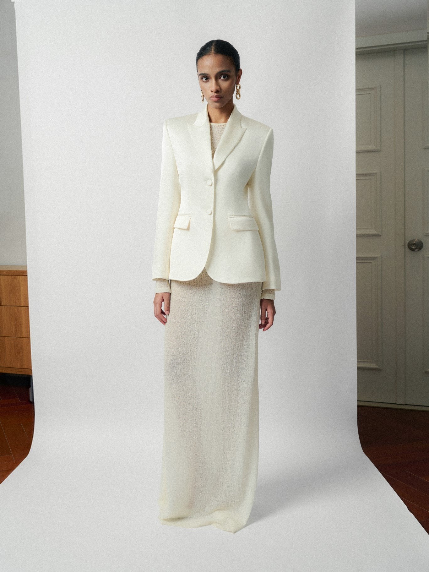 Elevate your formalwear with this tailored satin blazer from Laura Ren, expertly designed for a polished, sculptural silhouette. Featuring structured shoulders, classic notched lapels, and flap front pockets, this blazer brings timeless sophistication to modern suiting. The single-breasted front closure and precisely placed darts define the waist for a flattering feminine shape. Whether layered over a gown or styled with sharp trousers, this piece offers a versatile wardrobe anchor. Laura Ren blends minimalist tailoring and rich textures to deliver effortless elegance in every occasion.