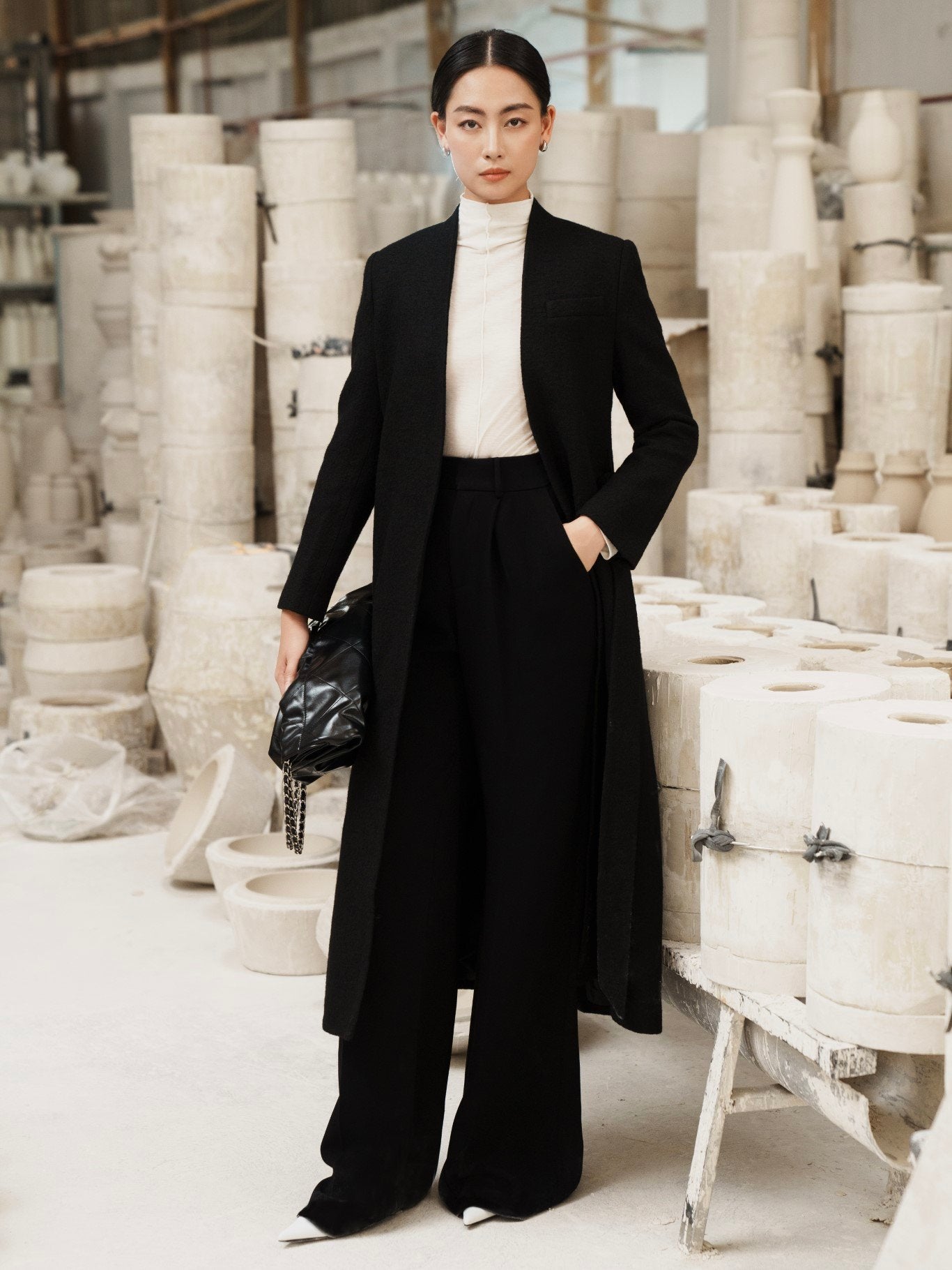 Elevate your winter wardrobe with this tailored long coat crafted from a premium wool blend for warmth and elegance. Featuring a sleek open-front cut, structured shoulders, and a streamlined silhouette, this piece offers timeless appeal and versatile layering potential. Whether worn over tailored pants or a dress, it provides effortless polish for both professional and refined casual settings. Designed with minimalist detailing for a clean finish, this coat blends contemporary styling with classic tailoring. A signature piece from Laura Ren, where every stitch reflects timeless sophistication and modern luxury.