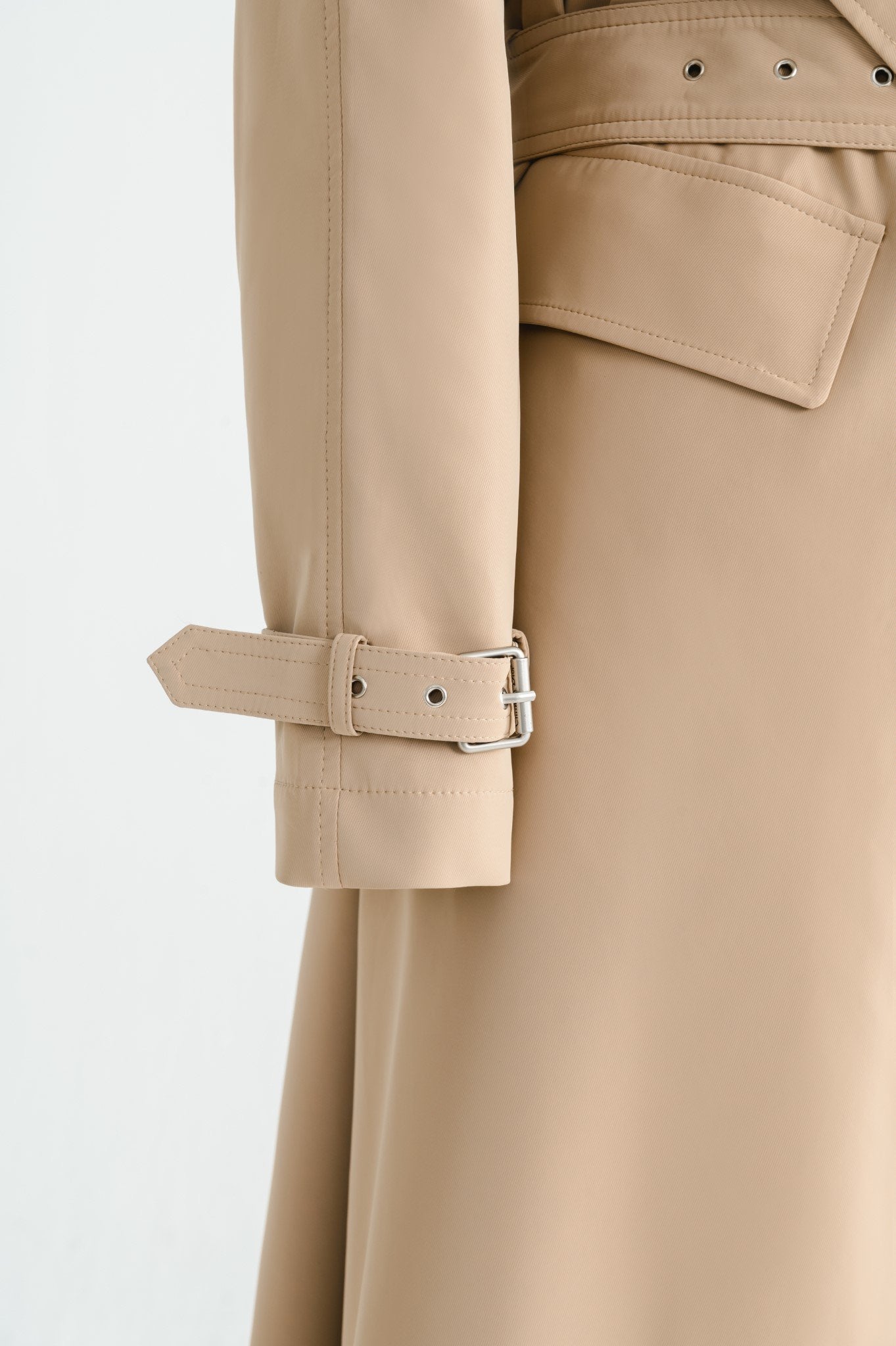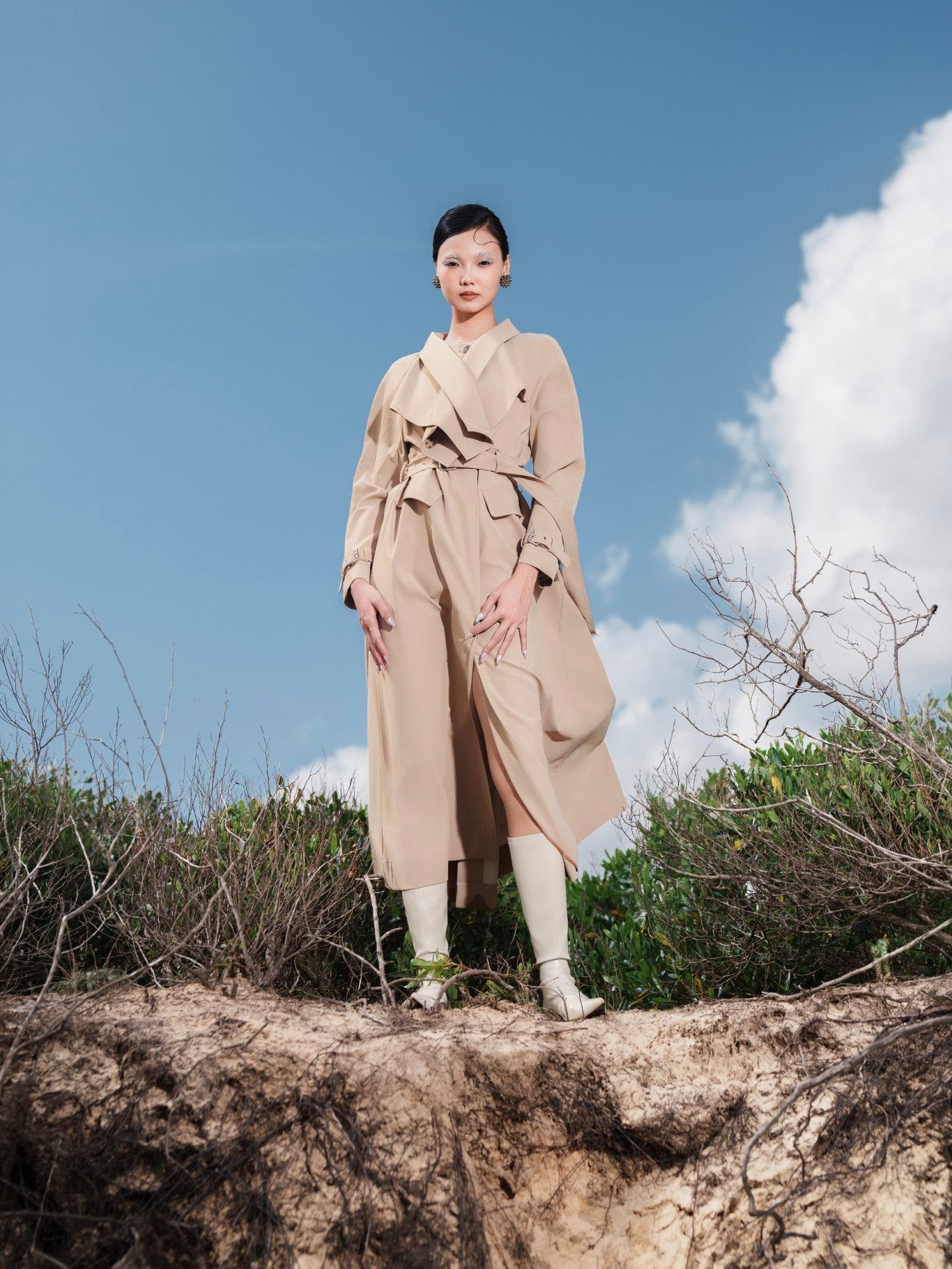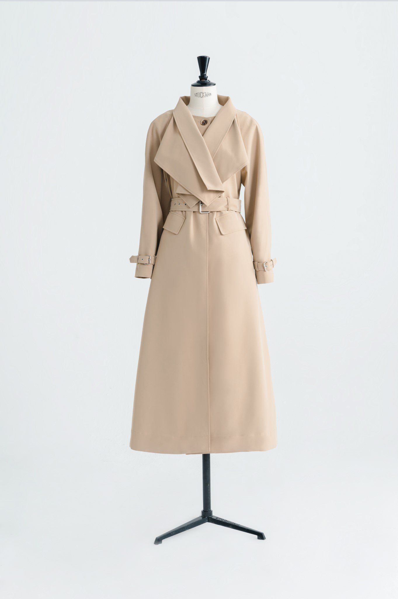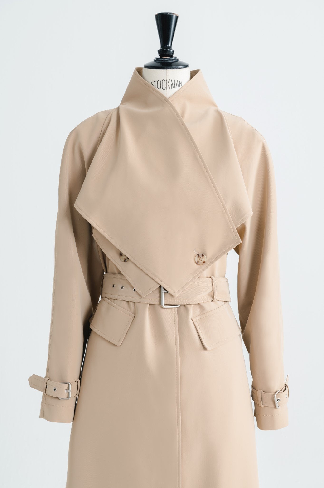 Laura Ren presents a refined interpretation of timeless outerwear with this tailored wool blend trench coat. Designed with exaggerated lapels and a sculptural silhouette, the coat features a sharp belted waist, adjustable sleeve cuffs, and flap front pockets for classic trench functionality. The longline cut and structured fit offer elegant coverage while the premium wool blend ensures both warmth and softness. A concealed front placket and tonal belt polish off the piece with minimalist precision. Sophisticated and versatile, this coat elevates everyday dressing with Laura Ren’s modern tailoring.