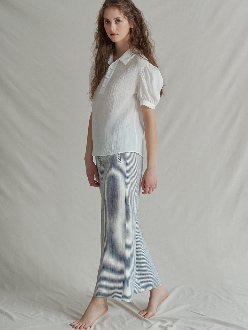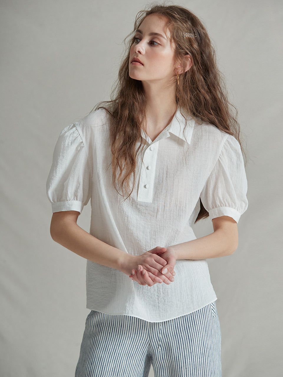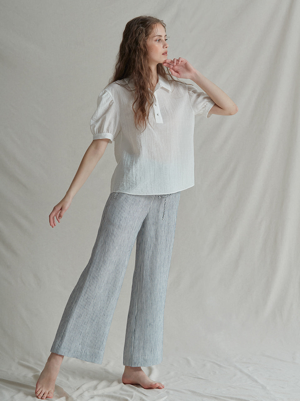 Elevate your everyday wardrobe with this lightweight linen shirt from Sarah Luton, expertly crafted to deliver timeless elegance and breathable comfort. Featuring short puff sleeves and a structured collar, this design blends casual charm with refined tailoring. The textured linen weave ensures a crisp yet soft drape, perfect for warm-weather styling. Designed to pair effortlessly with high-waisted trousers, skirts, or shorts, this linen shirt is an essential for modern women who value understated sophistication and versatile wearability. A fresh, polished staple for elevated day-to-day looks.