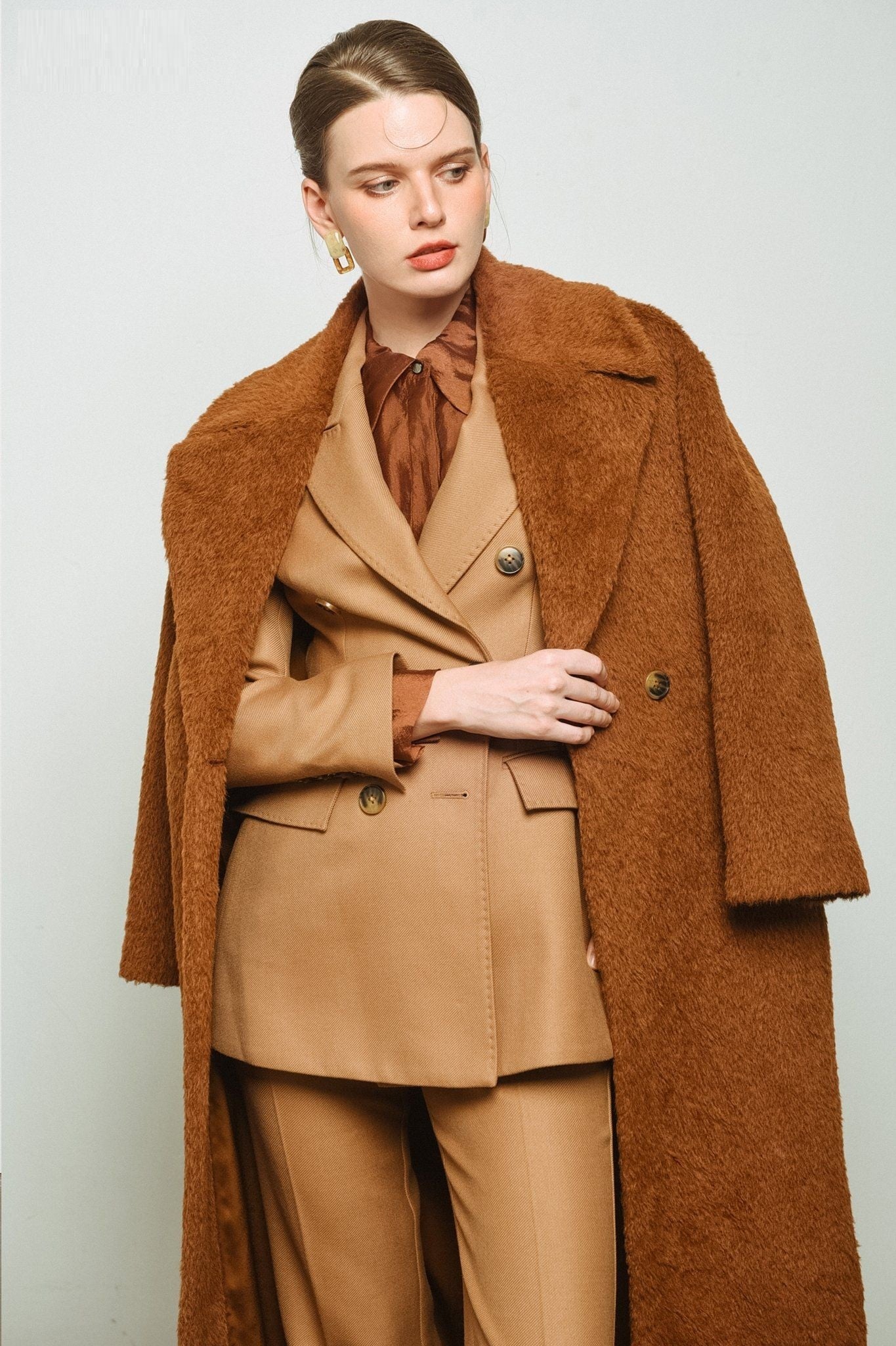 Elevate your outerwear with this statement wool-blend coat from Laura Ren, tailored in a rich textured fabrication for depth and warmth. Featuring a relaxed double-breasted silhouette with oversized lapels and a full-length cut, this coat balances softness with strong structure. Designed to be layered over suiting or dresses, it drapes effortlessly while offering insulating comfort. Perfect for city layering and refined cold-weather styling, the Laura Ren wool-blend coat delivers timeless elegance with a modern, tactile finish.