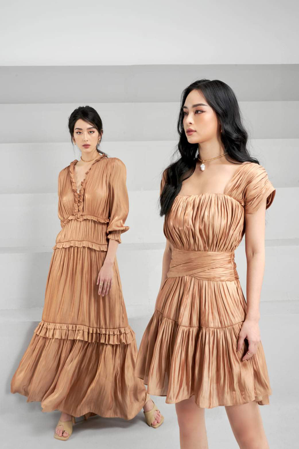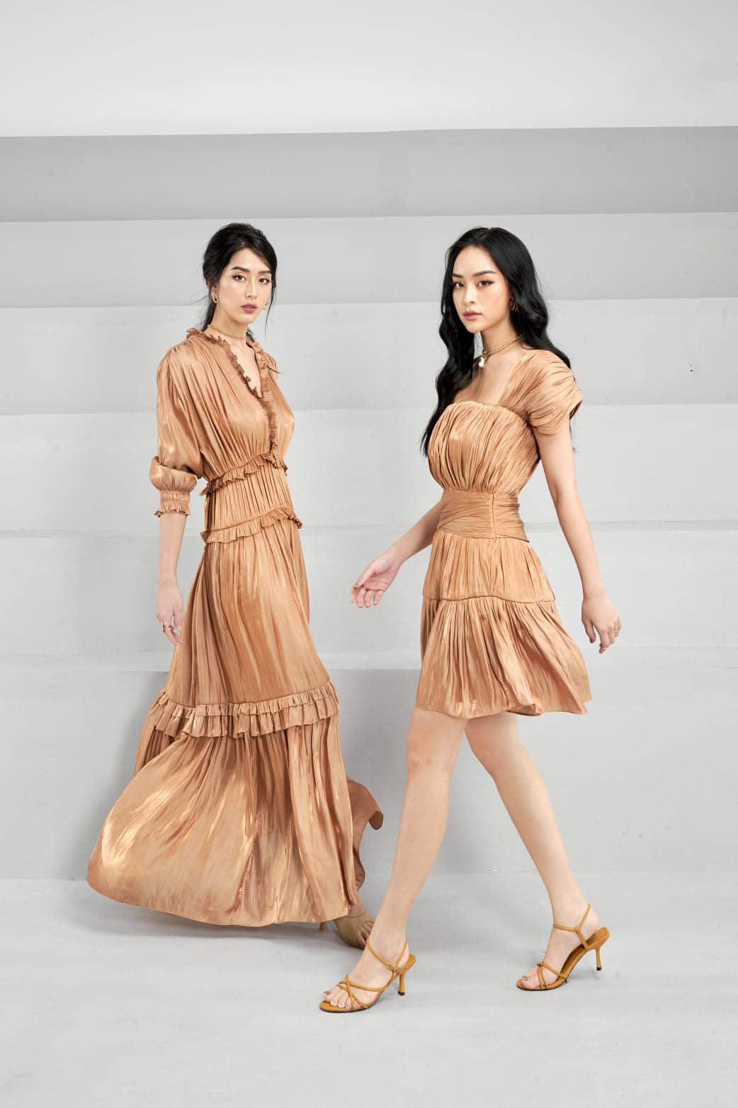 Breeze through summer in this pleated silk maxi dress by Sarah Luton — a refined blend of elegance and ease. Crafted from fluid silk with a soft sheen, this full-length dress features romantic ruffle trims, a flattering shirred waist, and voluminous sleeves that enhance its graceful movement. The tiered maxi skirt flows beautifully with every step, making it perfect for seaside escapes, garden events, or elegant daywear. Sarah Luton’s signature attention to detail ensures this piece is both timeless and luxurious, ideal for modern women who appreciate effortless sophistication.