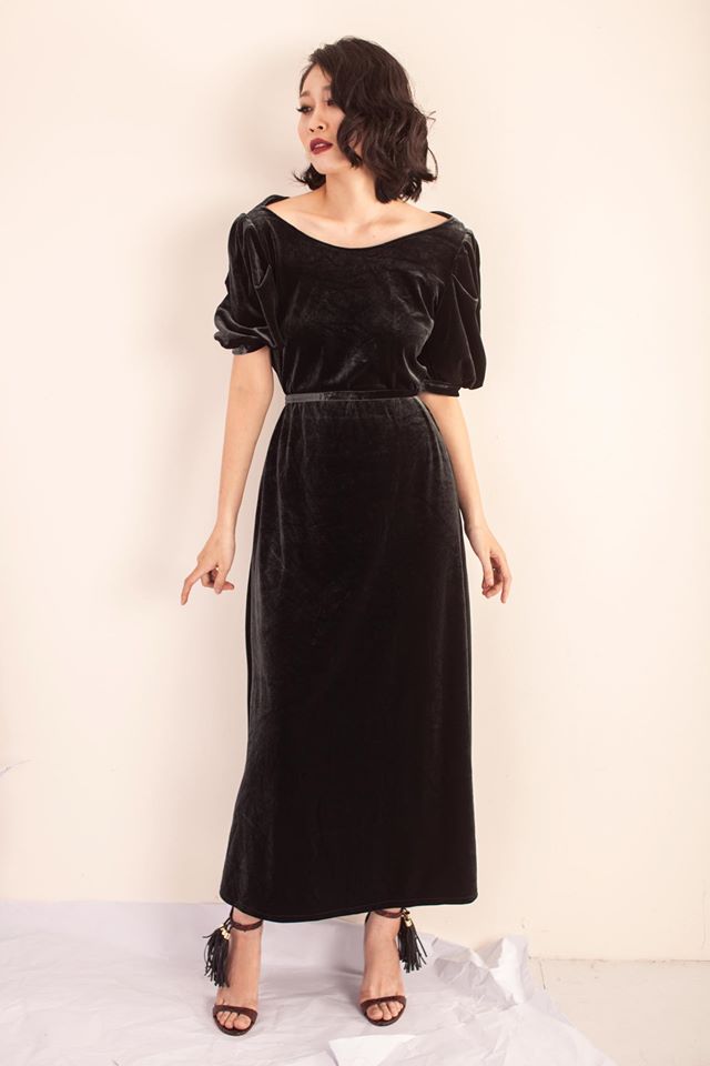 This velvet maxi dress by Laura Ren is designed to turn heads with its plush texture and elegant silhouette. Featuring romantic puff sleeves, a gently scooped neckline, and a defined waistline, this design blends vintage-inspired charm with modern refinement. The rich velvet fabric offers a soft, fluid drape and understated sheen that moves beautifully with every step. Ideal for evening events or special occasions, this timeless piece offers comfort and class in equal measure. Elevate your evening wardrobe with this standout velvet creation by Laura Ren.