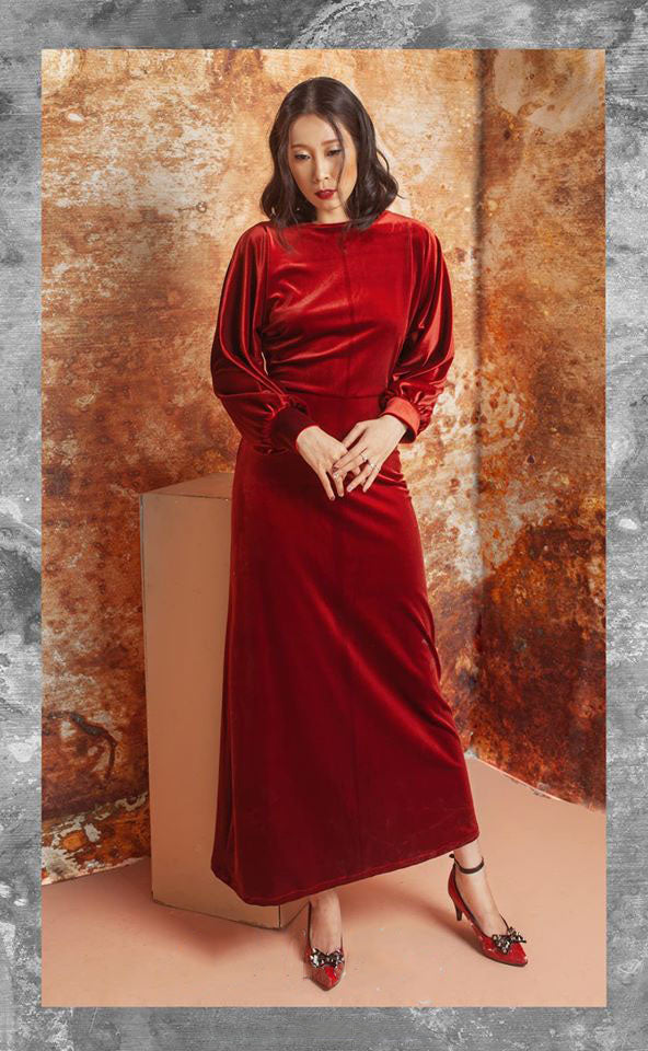 Crafted from rich velvet, this full-length dress from Laura Ren is designed to captivate. The structured silhouette is enhanced by softly gathered long sleeves and a smooth fitted bodice, offering a balance of drama and refinement. Perfect for formal evenings and elegant gatherings, this velvet dress combines tactile comfort with timeless sophistication. The floor-grazing length elongates the frame while the tailored cut ensures a flattering fit. Style it with statement heels to elevate your evening look with confidence and grace.