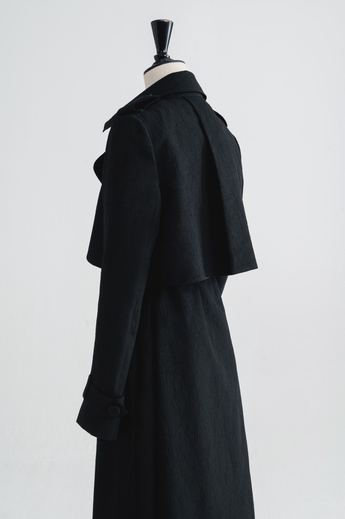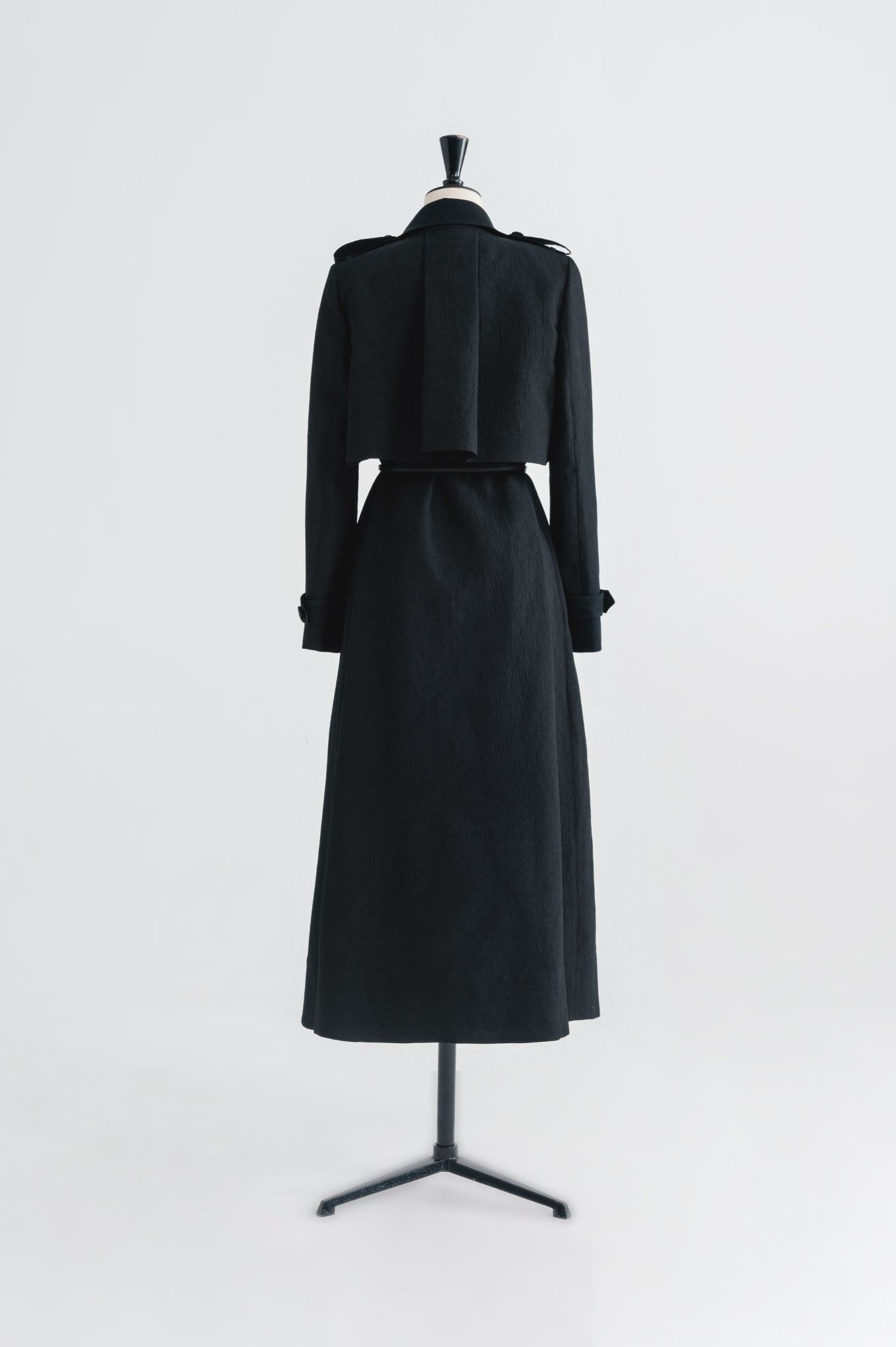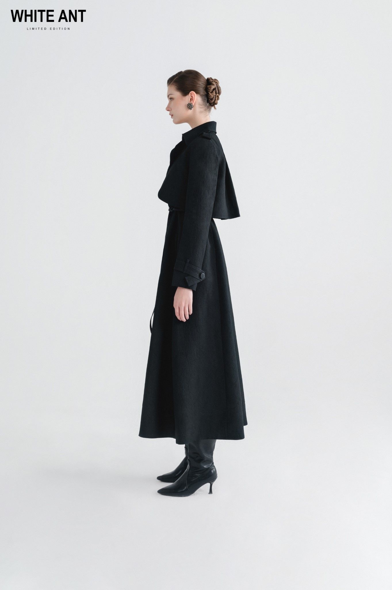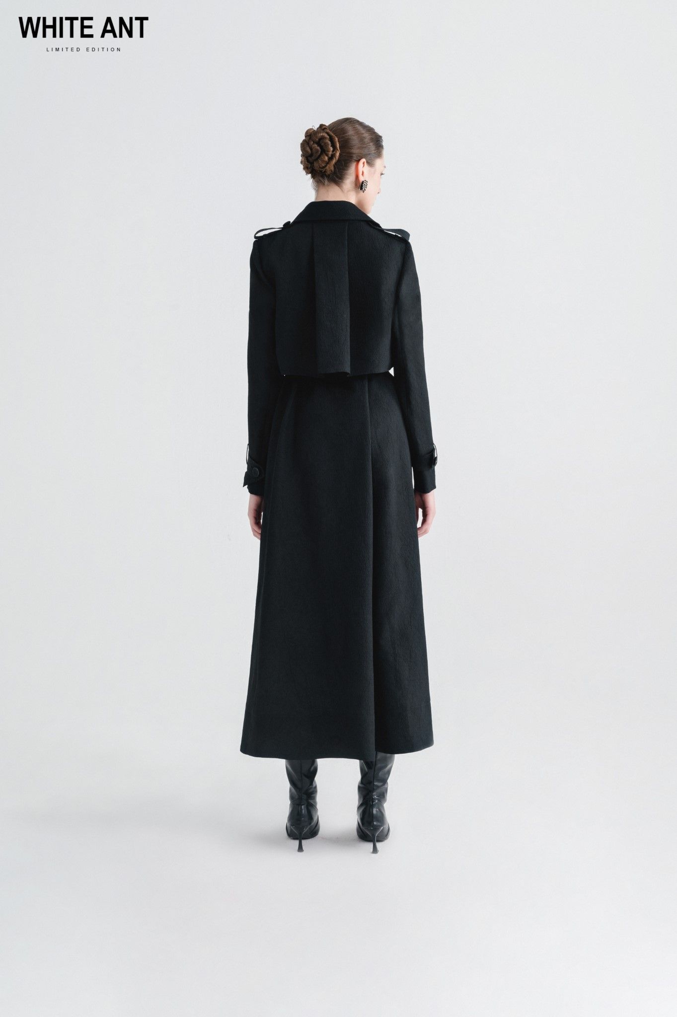 Laura Ren presents a timeless trench silhouette elevated by a double-breasted wool blend construction, designed for modern elegance and transitional layering. This piece features sharp tailoring with wide notched lapels, buttoned epaulettes, and a detachable waist tie for a customizable fit. The structured cropped overlay and calf-length hemline bring architectural refinement to a classic coat style. Perfect for seasonal transitions, this trench coat merges functional warmth with fashion-forward sophistication. A refined outerwear staple for contemporary wardrobes from Laura Ren.
