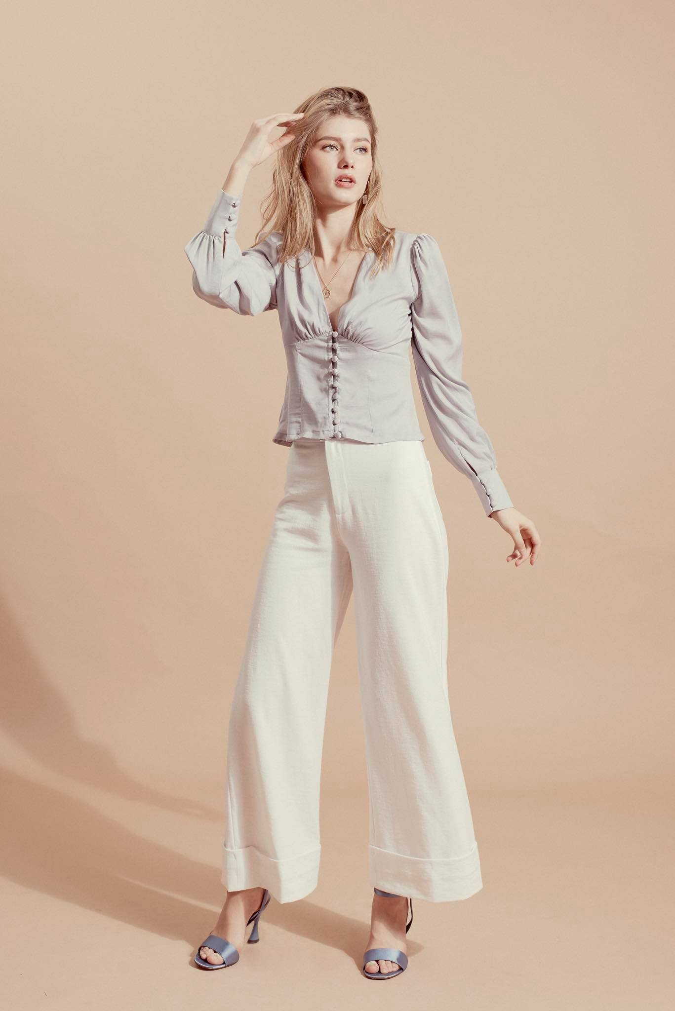 这款来自 Laura Ren 的修身天鹅绒衬衫,精致的设计细节,可为任何造型增添光彩。它采用光泽柔和的天鹅绒面料制成,前襟采用褶皱设计,并搭配同色系包布纽扣,更显质感与立体感。深V领设计凸显肩颈曲线,微微蓬松的肩部和长袖设计,打造出精致的廓形,无论是在职场还是晚宴场合,都堪称完美。这款衬衫采用腰部剪裁,修身显瘦,可与高腰裤或廓形半身裙完美搭配。无论是打造精致的日间造型,还是盛装出席晚宴,这款衬衫都能以现代剪裁展现隽永的精致气质。