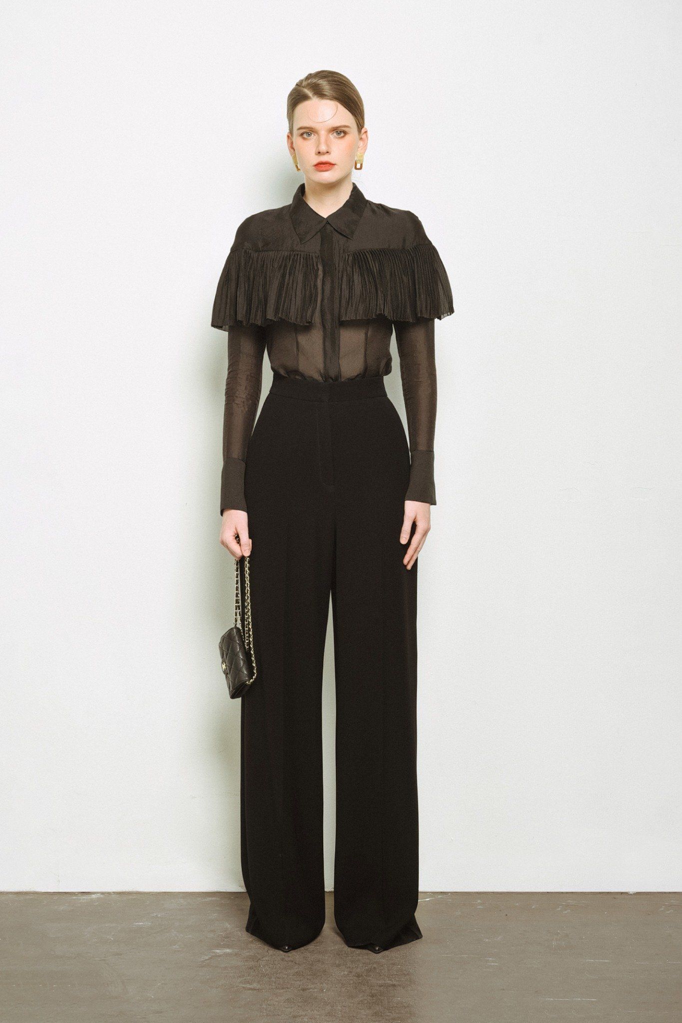 The SEI wide-leg pants from Laura Ren capture the essence of timeless tailoring in breathable linen. Designed to elongate the silhouette, this high-waisted cut features a structured waistband, front pleats, and a sleek leg line that flows with effortless grace. The hidden closure ensures a clean, uninterrupted front, making it the perfect pair for everything from elevated workwear to chic evening looks. Style with fitted tops or sleeveless blouses to highlight its elongating proportions.