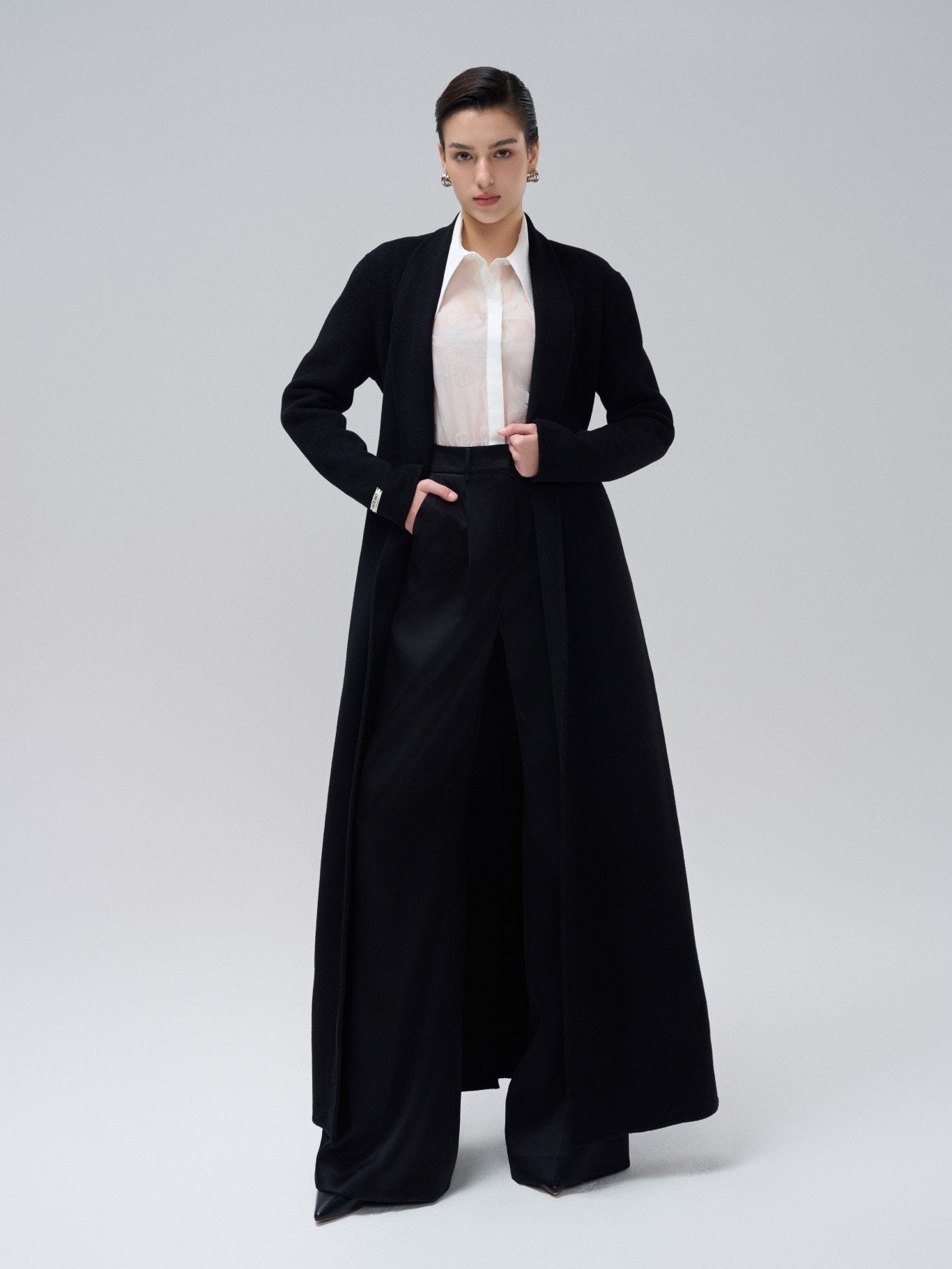 These wool-blend wide-leg pants by Laura Ren redefine classic tailoring with a bold, elongated silhouette. Crafted with a structured high-rise waistband and pressed front seams, the design creates a clean, streamlined profile while allowing fluid movement. The extended length adds drama and elegance, perfectly complementing blouses or long outerwear. A versatile wardrobe staple, these pants offer refined ease for both formal and elevated daywear settings.