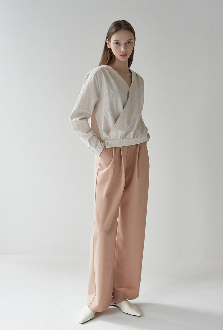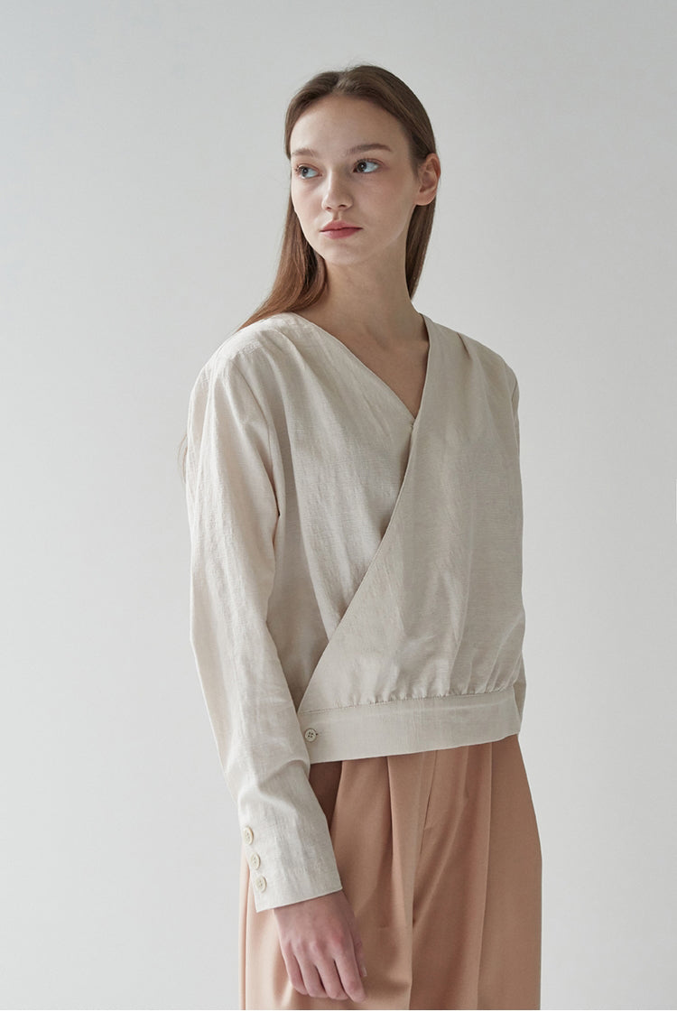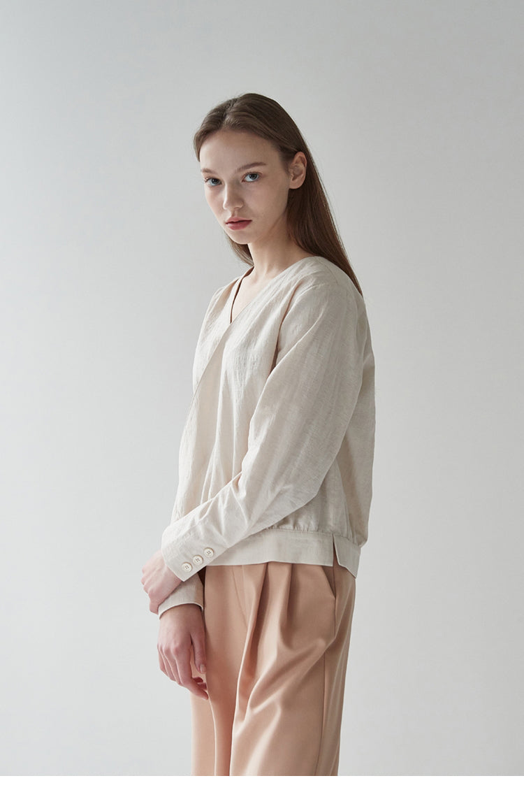 Sarah Luton 设计的裹身式亚麻衬衫,将低调优雅与透气舒适完美融合。这款上衣采用优质亚麻面料精制而成,拥有简洁的 V 领、柔软的肩部褶饰以及修身的裹身式廓形。轻盈的质地提升了透气性,是温暖天气的理想之选,亦可作为定制外套的内搭。其设计经典百搭,轻松提升休闲与精致造型的层次感。